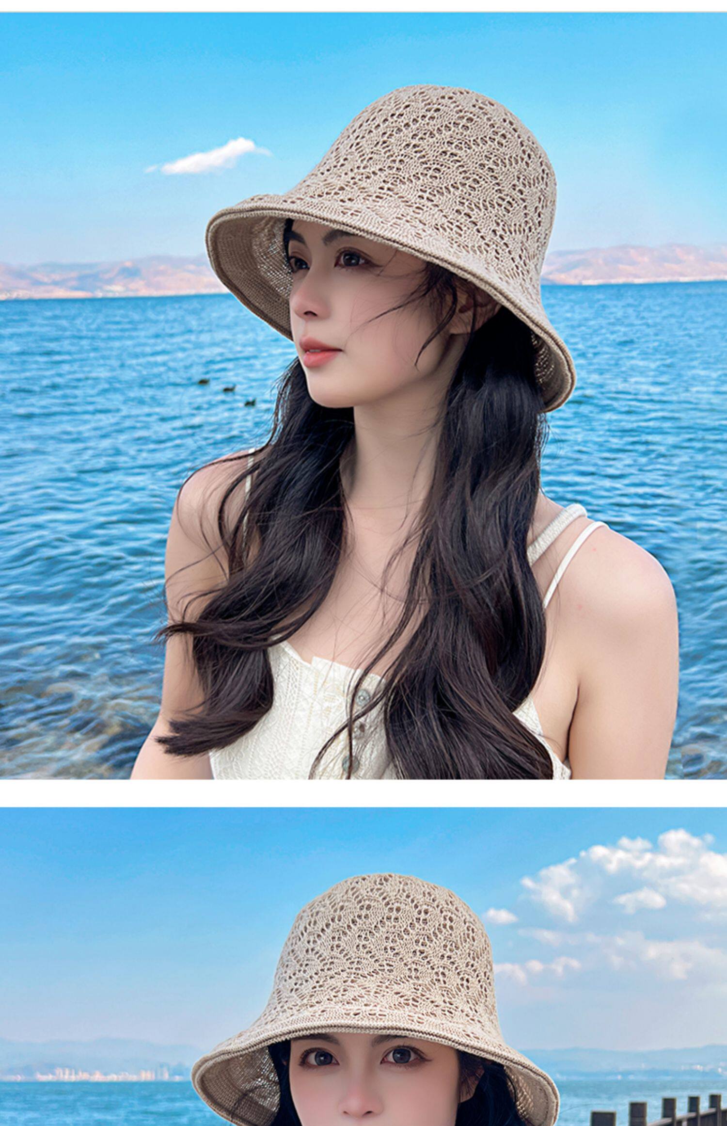 Антарктическое кружевное горшок Женщина Весна и летний солнцезащитный крем солнцезащитный крем с двойным двойным, пустым дышащим, складным рыбаком шляпой