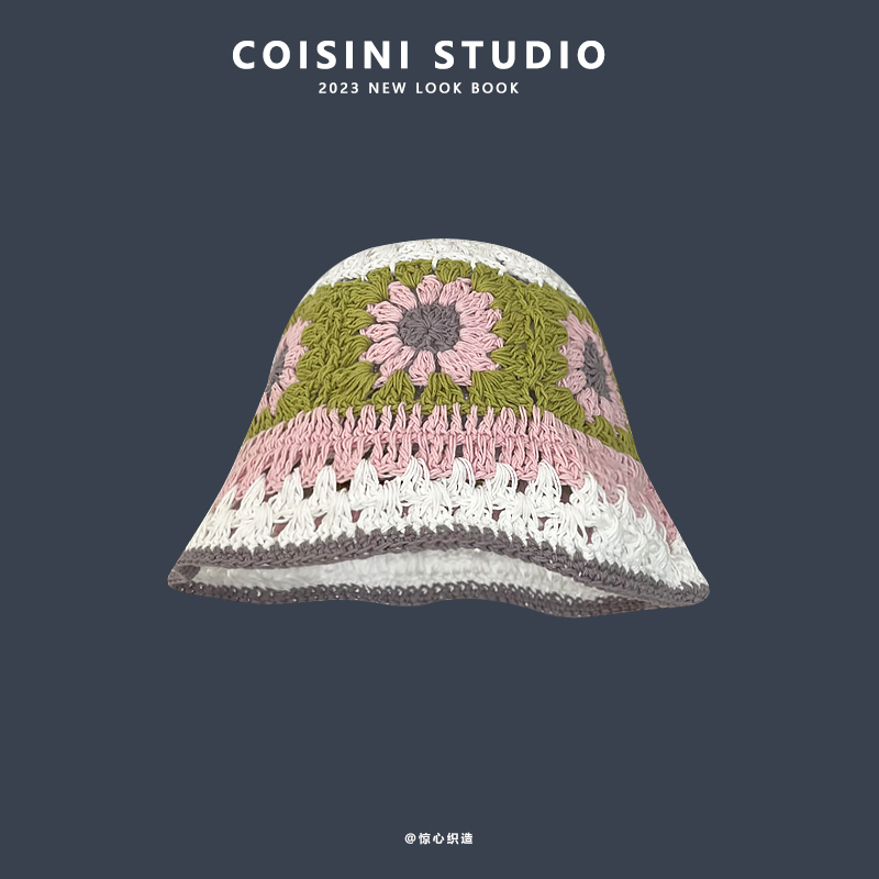 Японская ретро трикотажная весенняя летняя дышащая соломенная шапка, в цветочек, защита от солнца