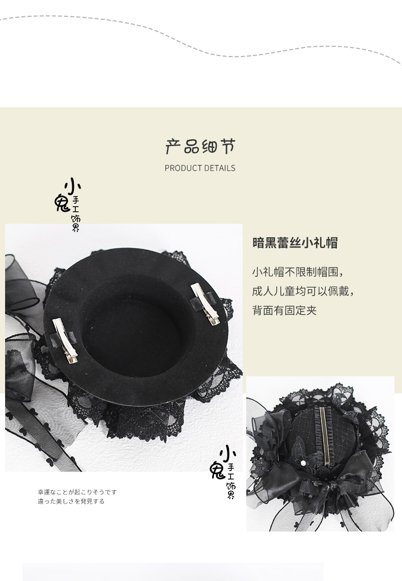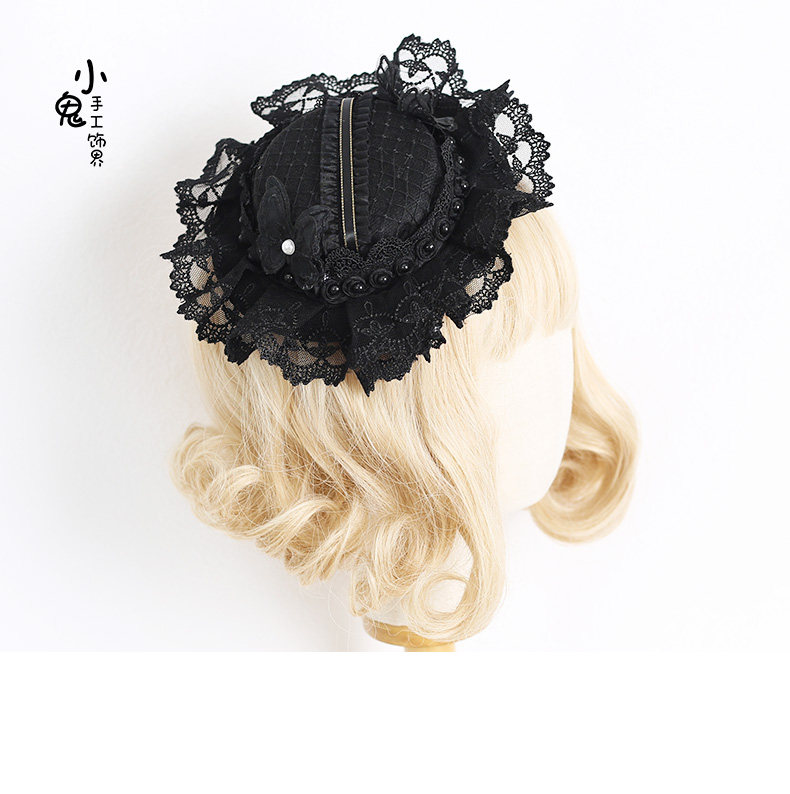 Оригинальная элегантная антикварная черная шапка, кружевной аксессуар для волос, стиль Лолита