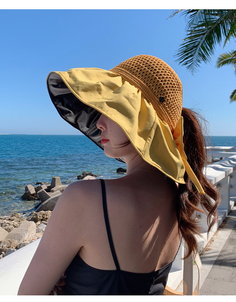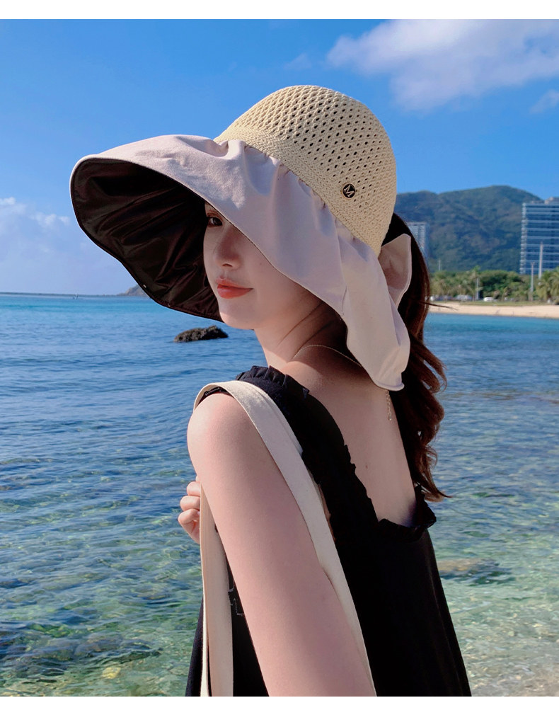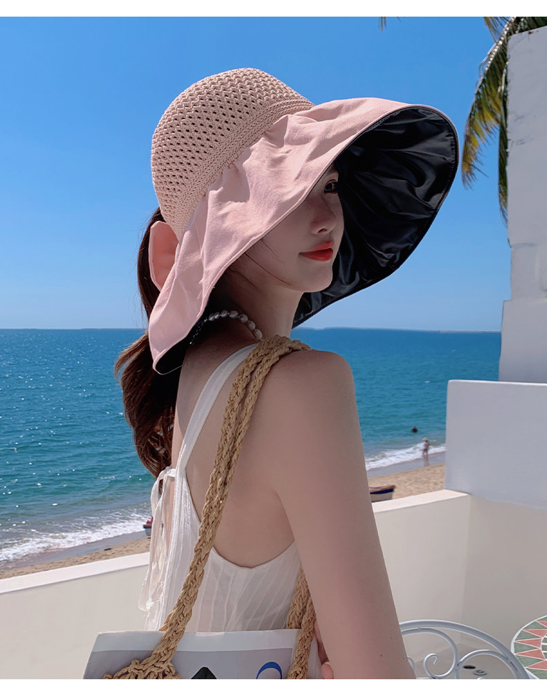 Шляпа Пушня для женщин 2025 Новая летняя солнцезащитная защита шляпа винила пустого верхнего солнца) может связать хвост