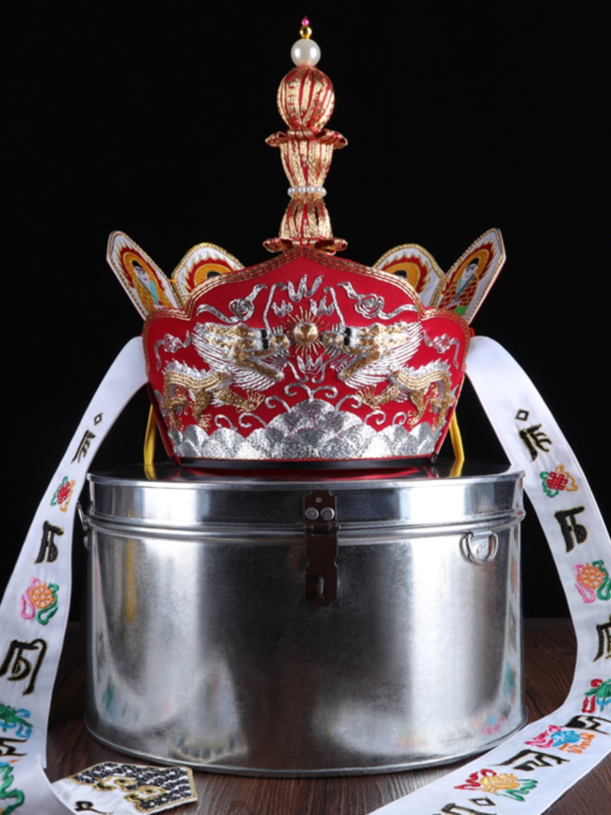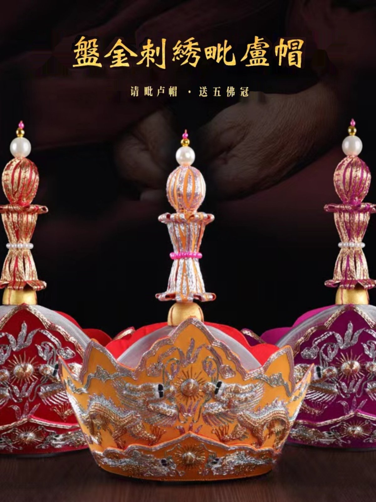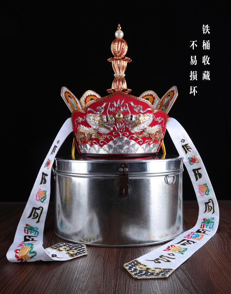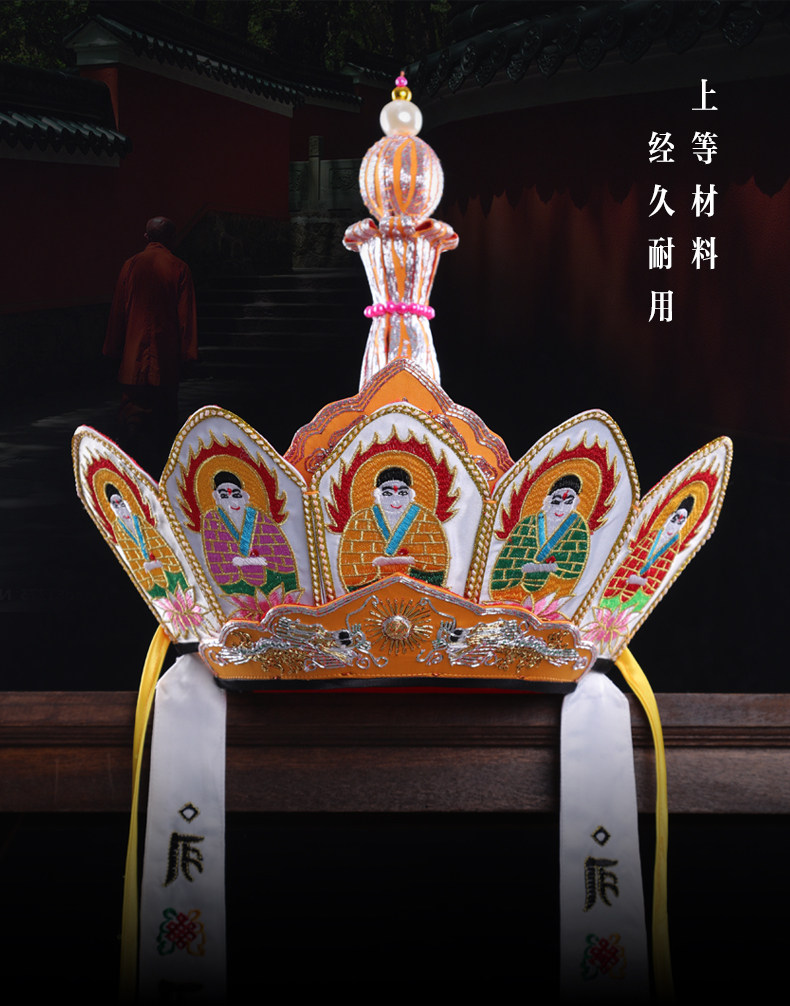 Высококачественная шляпа Вайрочана, ритуальная шляпа с пылающим ртом Мастера, вышивка двойным драконом монаха Тана ручной работы, подарок в виде пяти корон Будды, железная бочка