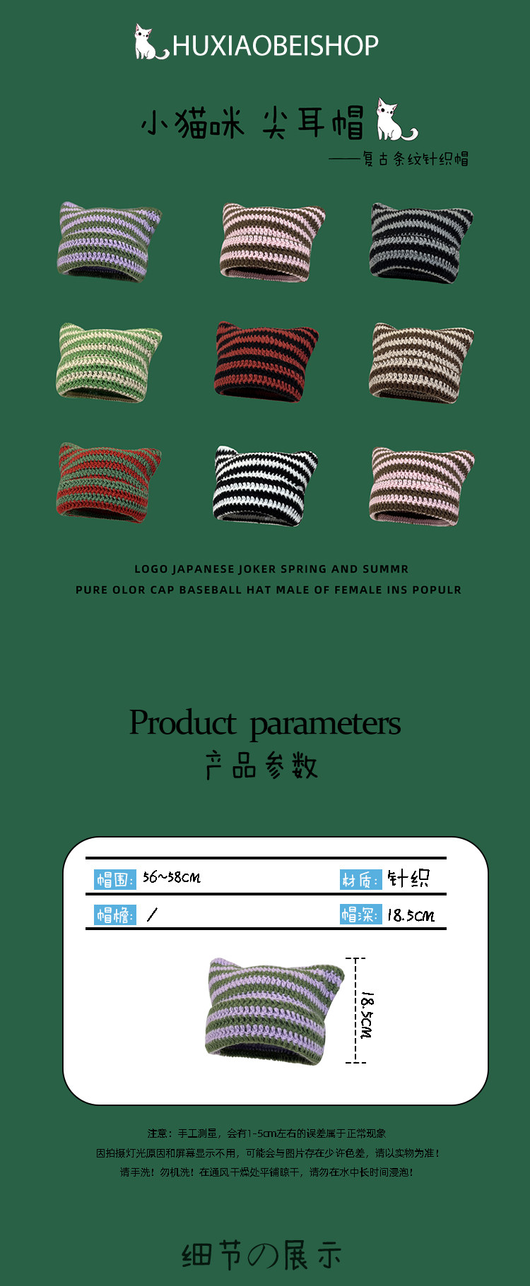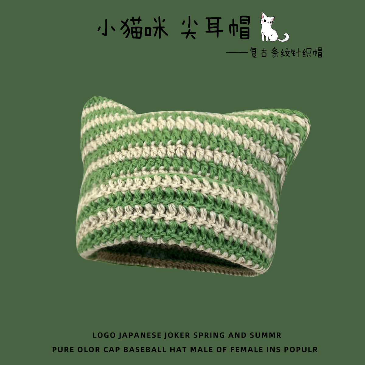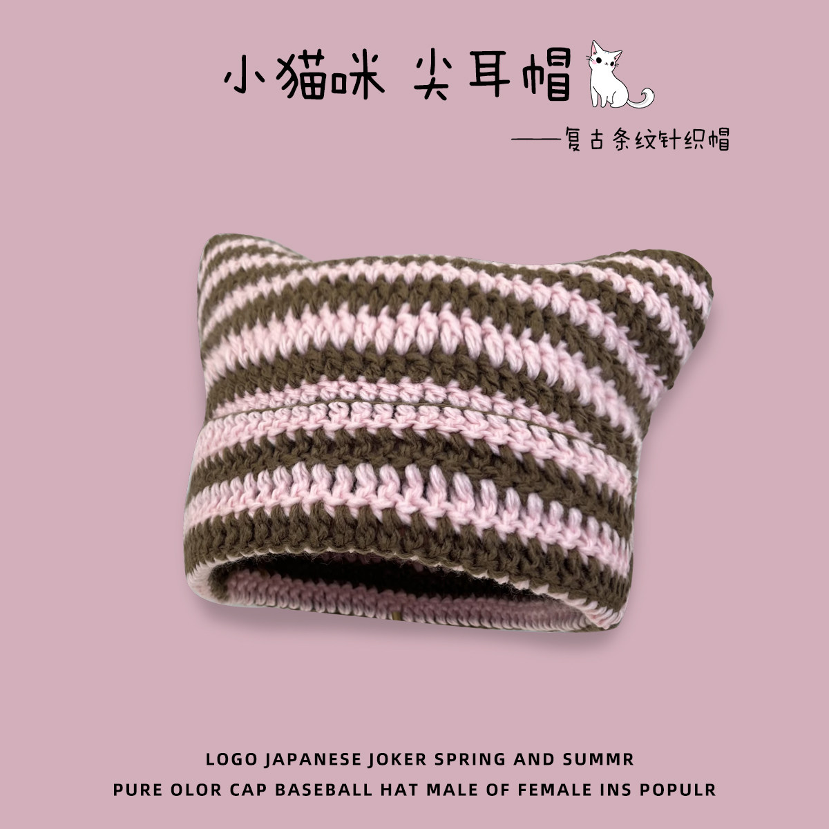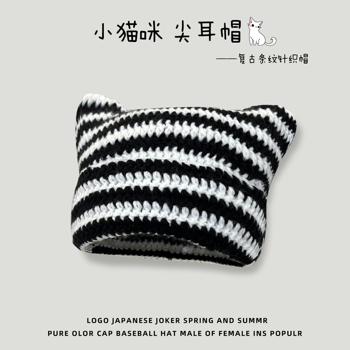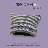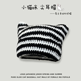 Японская полосатая шерстяная шапка в стиле ретро для женщин на осень и зиму, теплая, забавная вязаная шапка-пуловер с милым котом для студентов