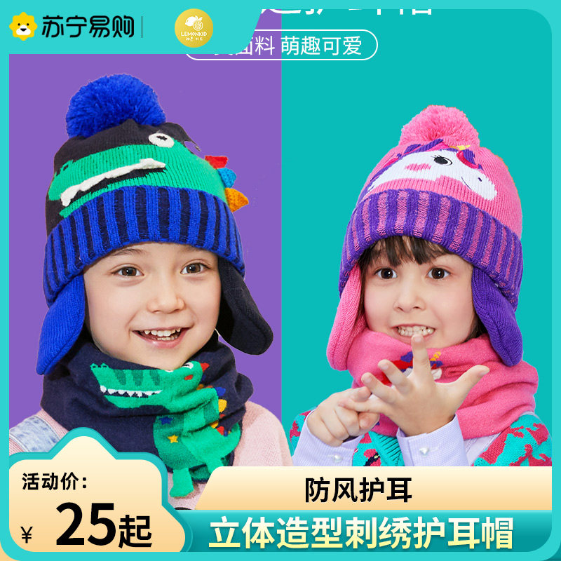 Лимонная детская демисезонная трикотажная ветрозащитная шерстяная шапка для мальчиков
