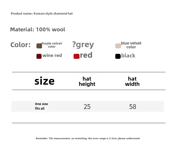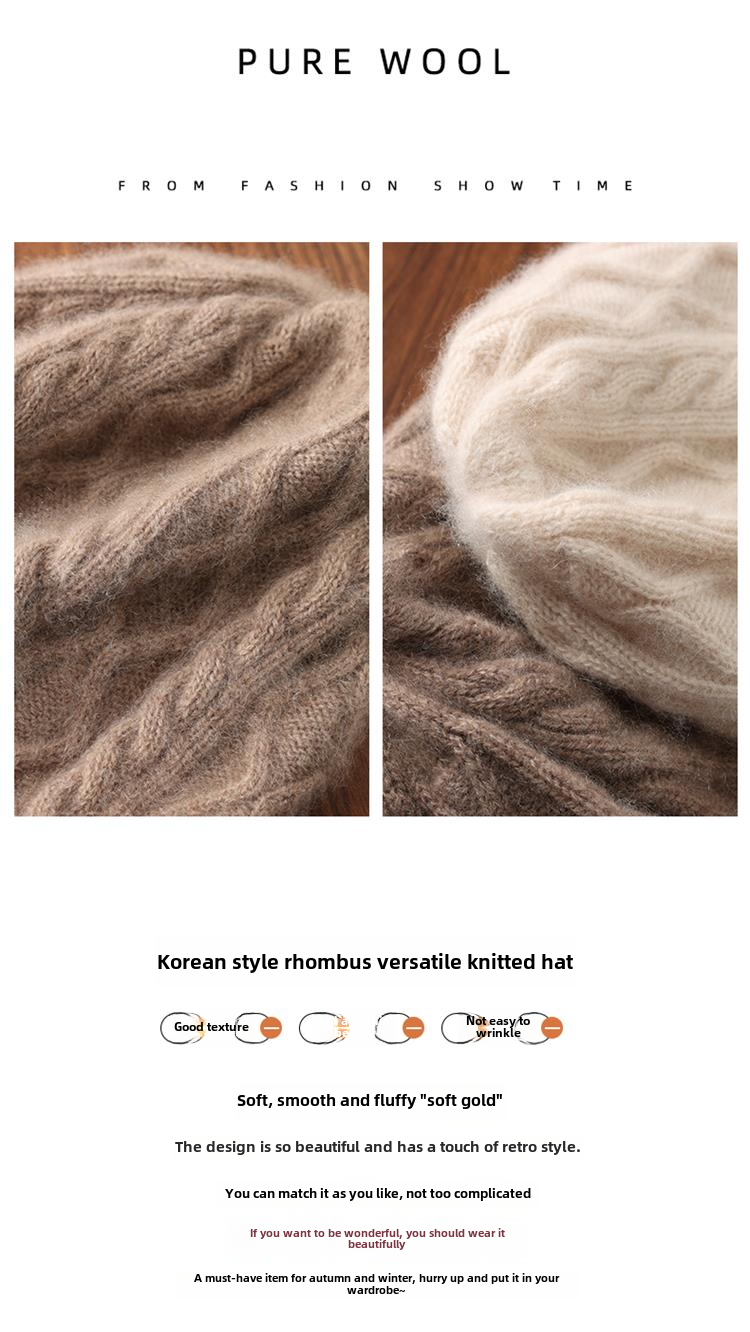Зимняя чистая шерстяная шляпа шляпа, универсальная модная шляпа, теплая бриллиантовая шляпа на ходу, элегантная молодежная шляпа