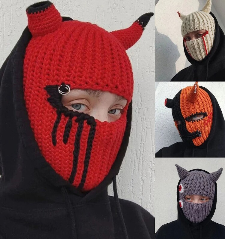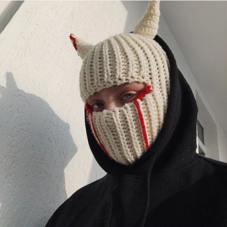 Забавный дьявол Маска Праздничная вечеринка с животным капюшоном осень и зимняя теплая вязаная шерстя