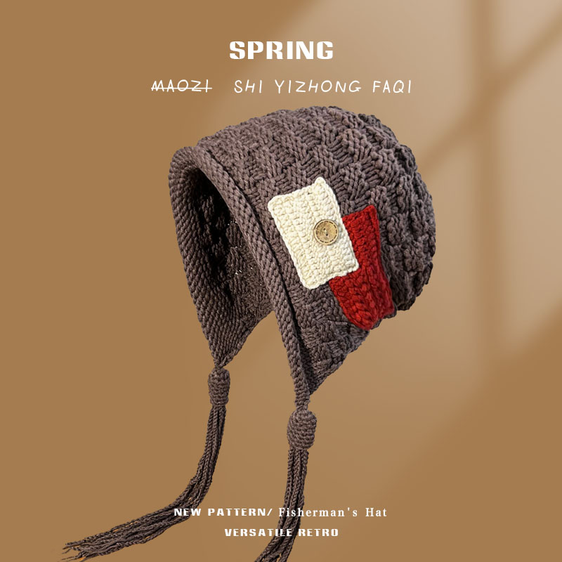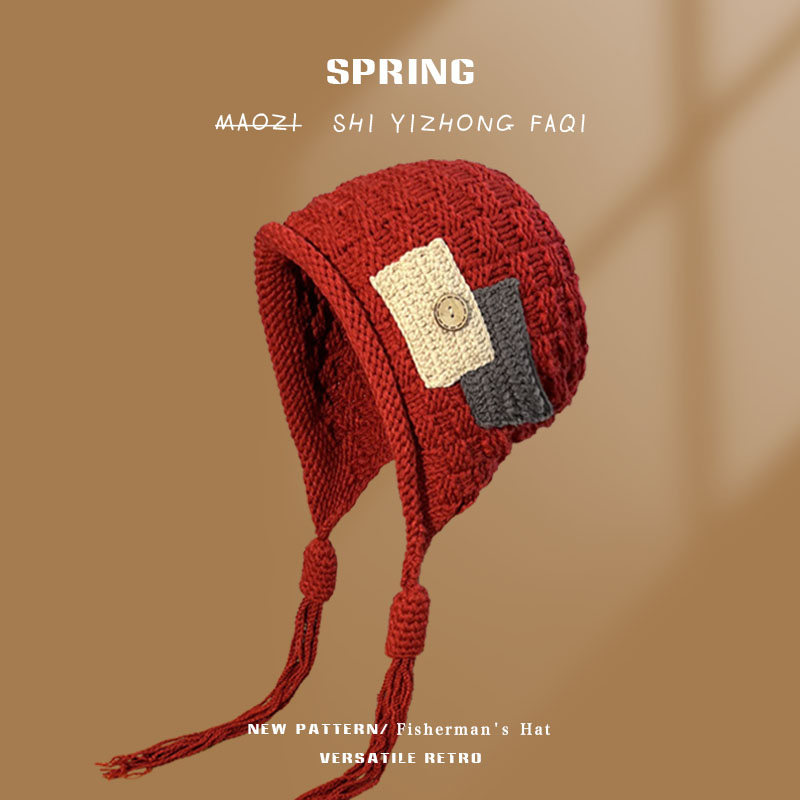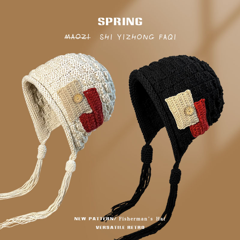Модная трендовая демисезонная удерживающая тепло трикотажная шерстяная шапка, в корейском стиле