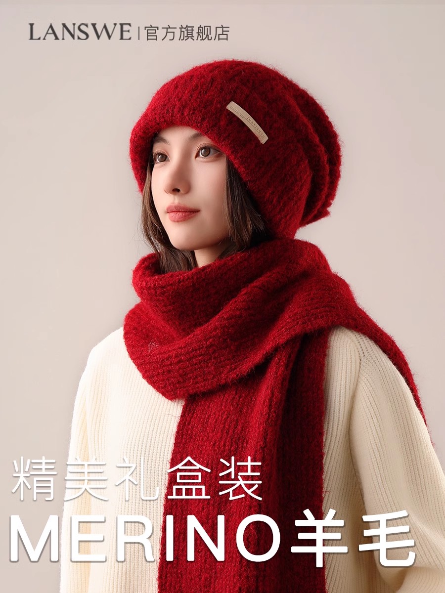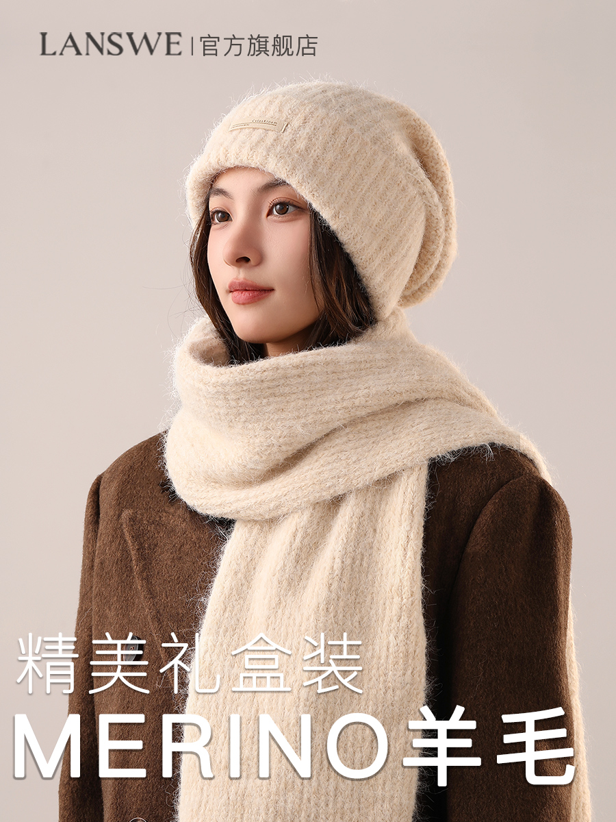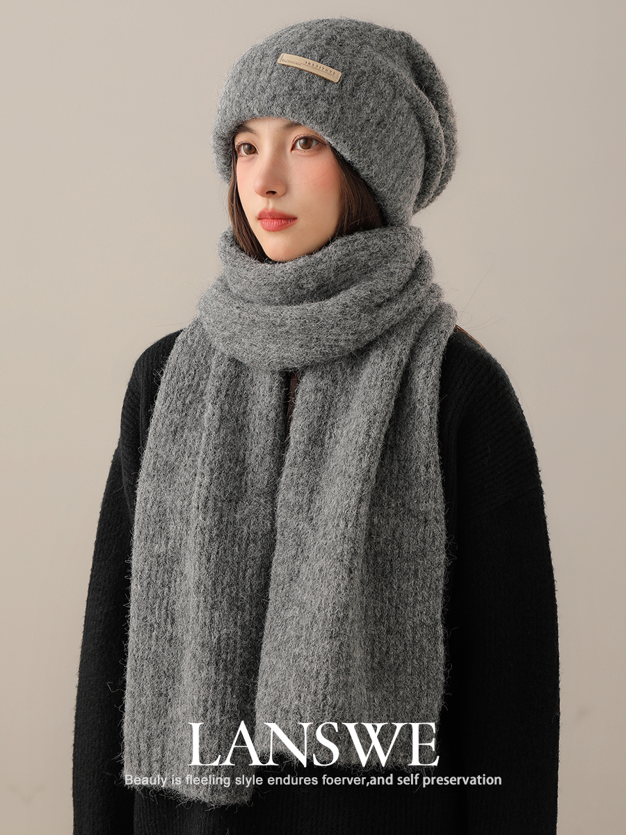 Шерстяной шарф, шапка, демисезонный комплект, трикотажная подарочная коробка, увеличенная толщина