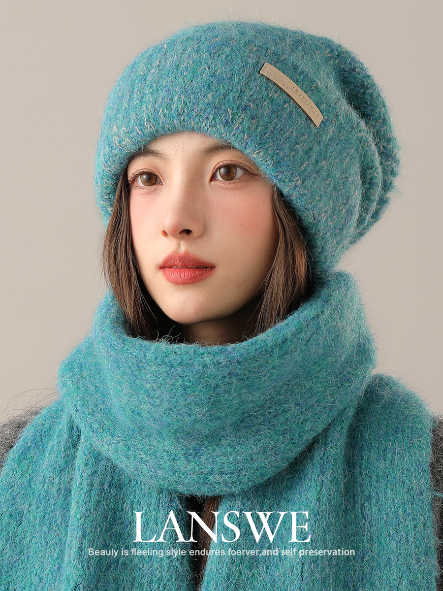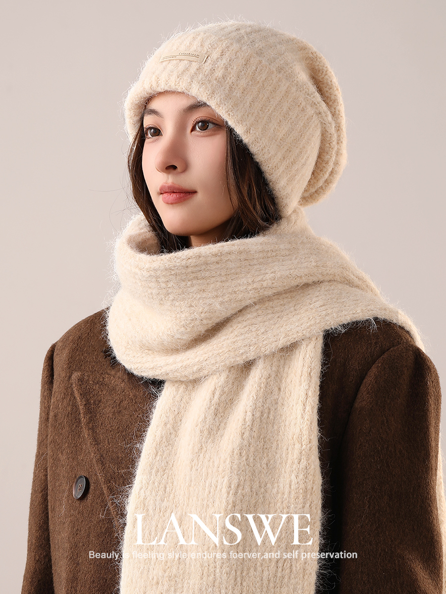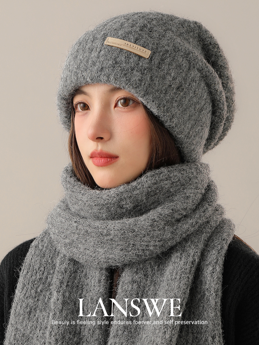 Шерстяной шарф, шапка, демисезонный комплект, трикотажная подарочная коробка, увеличенная толщина