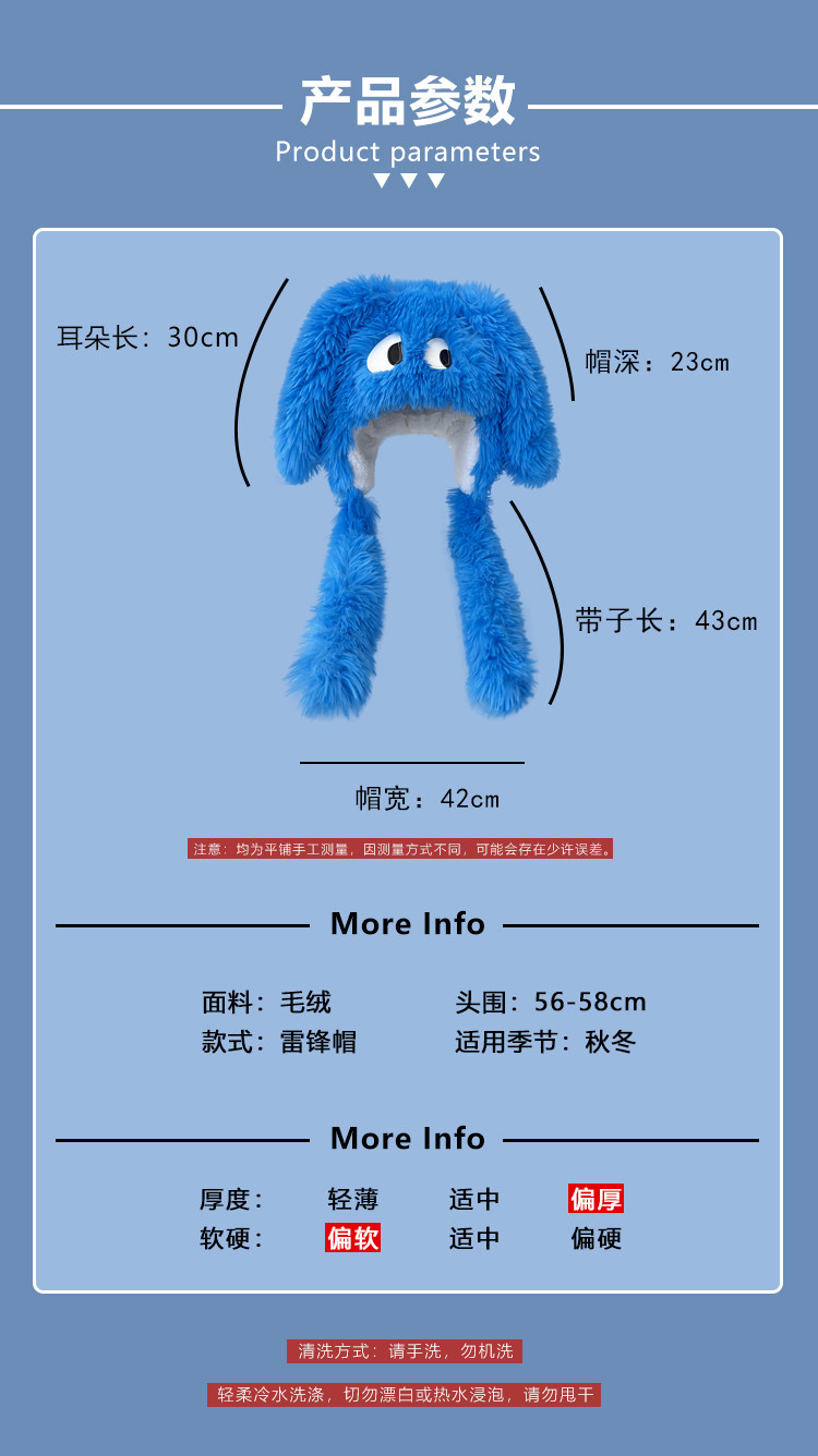 2024 Новая длинная группа смешная большая щенка плюшевая шляпа Leifeng har