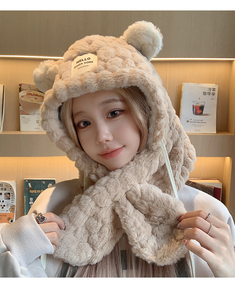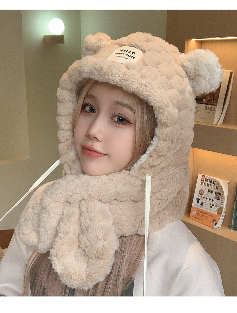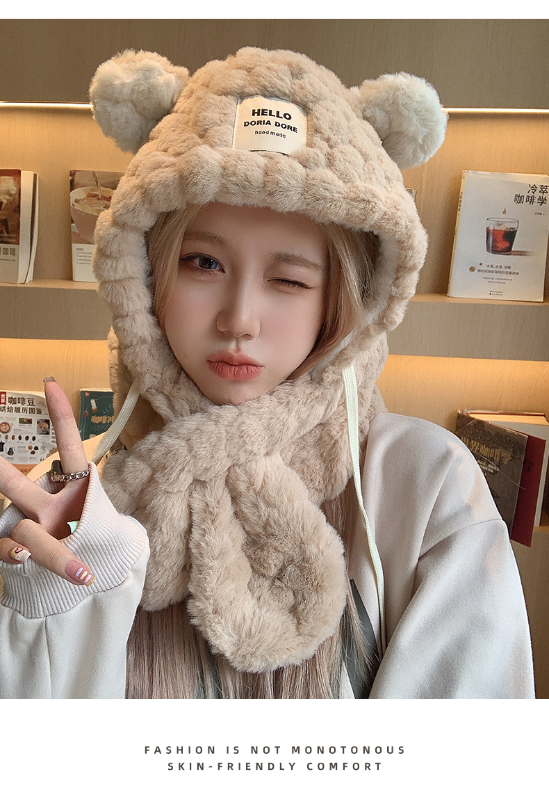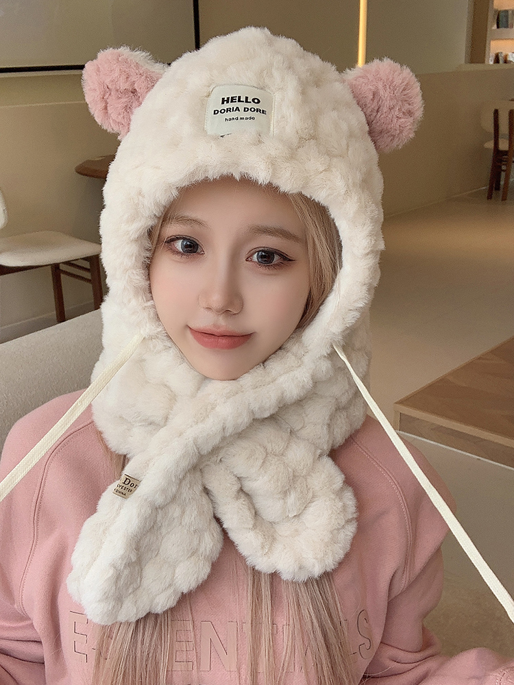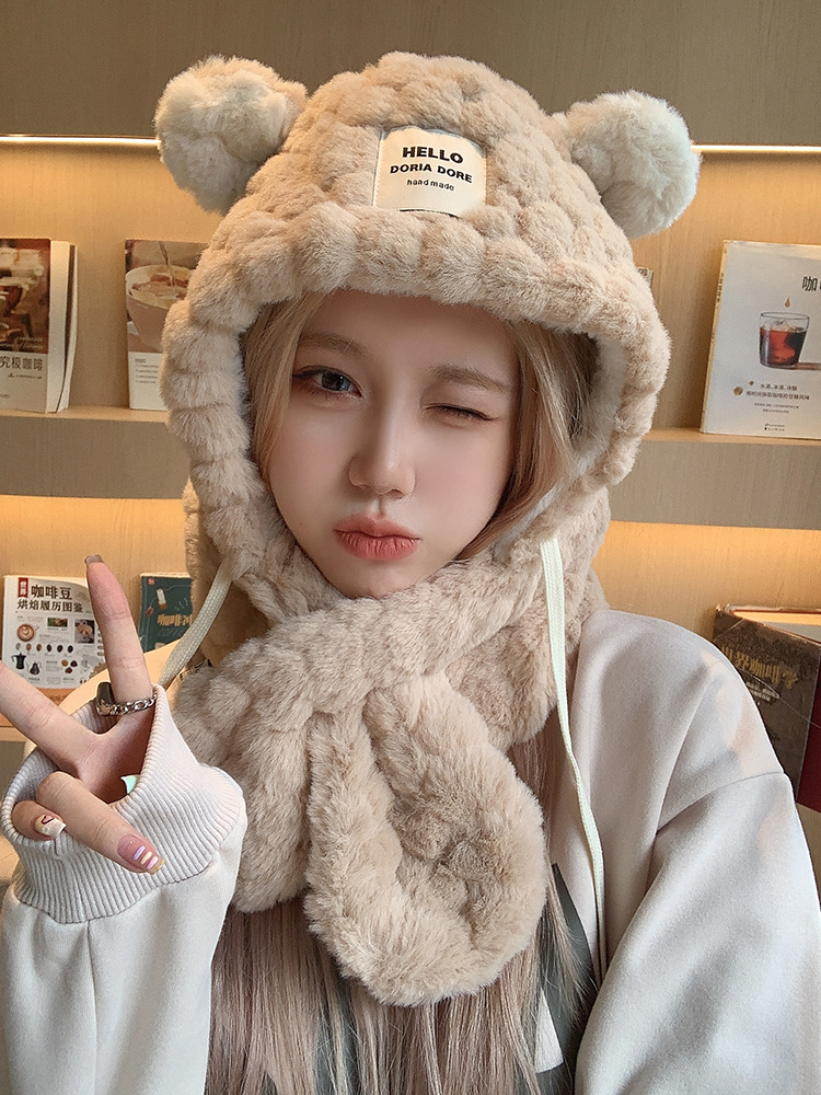 Милая шапка, зимний шарф, удерживающий тепло утепленный электромобиль для велоспорта, с медвежатами, в корейском стиле