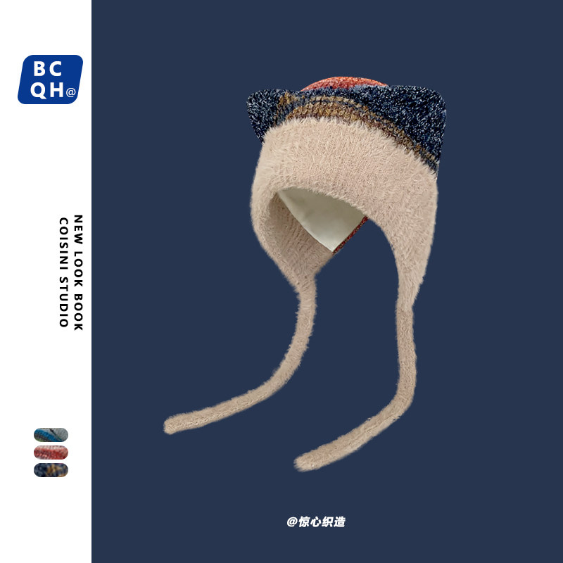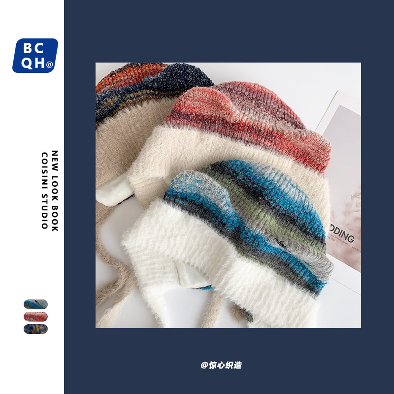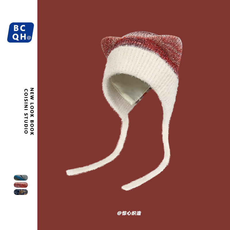 Милый трикотажный ремень, демисезонная удерживающая тепло универсальная шерстяная шапка