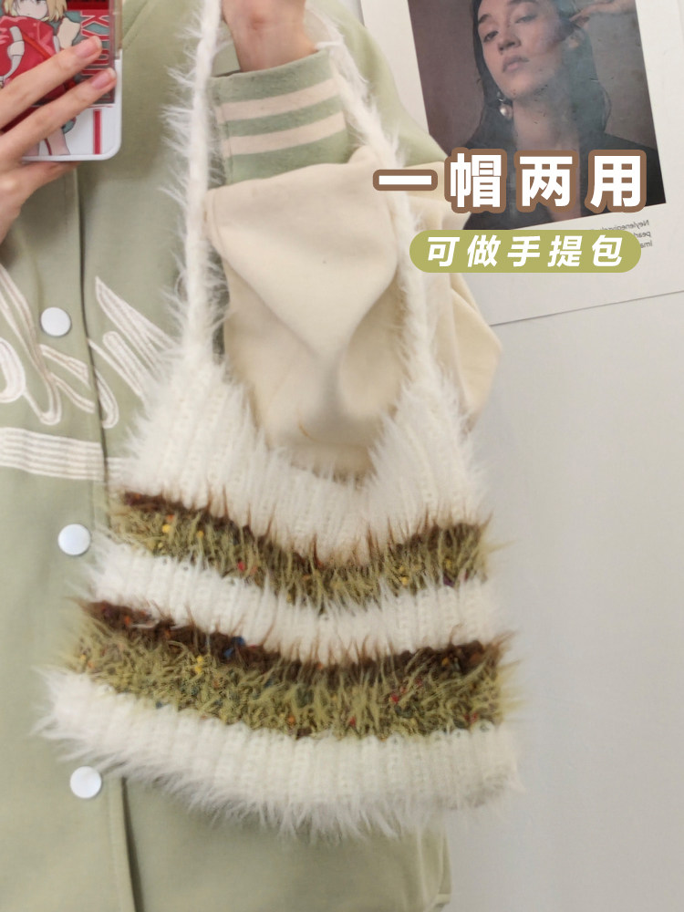 Японская атмосфера Haraju Wind Y2K Betal полосатая плюшевая шляпа девочка женская осень осень и зима теплые мобилизованные элидони