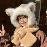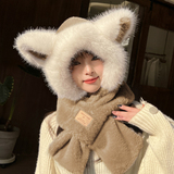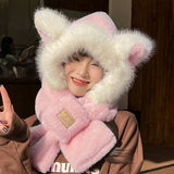 Милая шапка, ветрозащитный удерживающий тепло бархатный зимний шарф с капюшоном