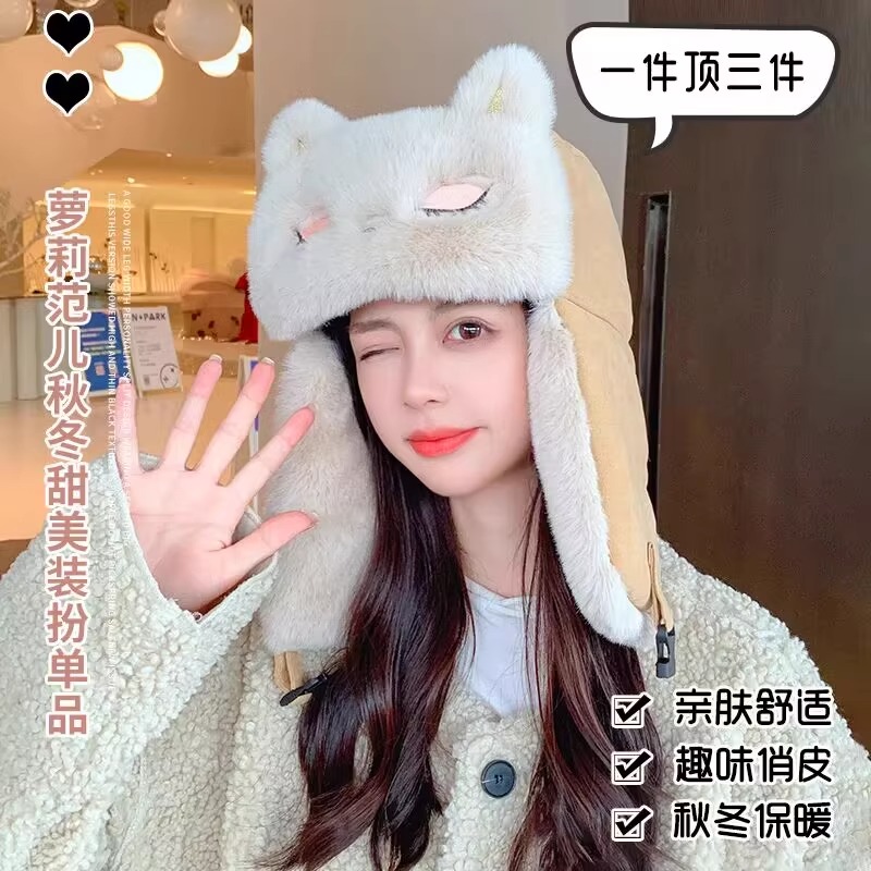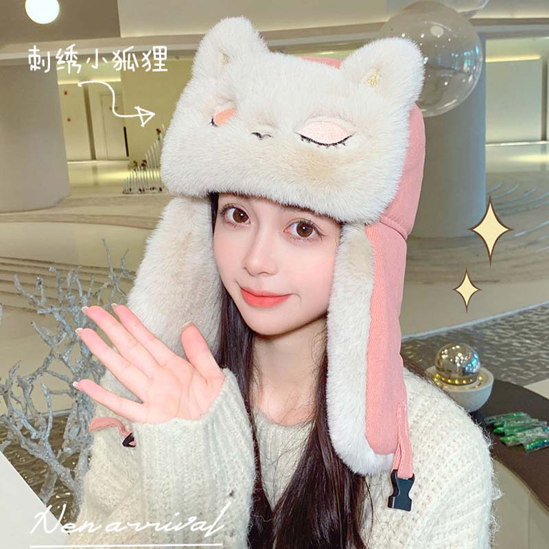 Маленькая енота енота Lei Feng Шляпа Женская зима милые и бархатные детские шляпы защищают ухо, утолщен, холодно, держите в тепле