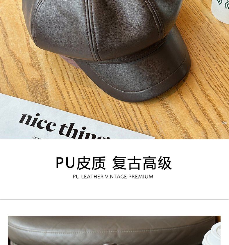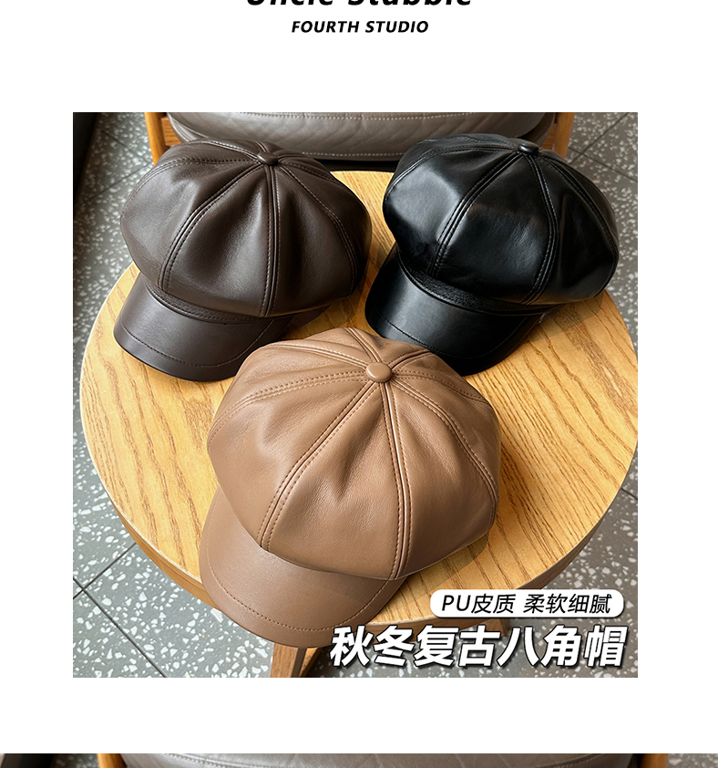 Нежная восьмиугольная шляпа из искусственной кожи для девочек, большая шляпа с открытым лицом сверху, маленькая шляпа газетчика, копия старинной мужской шляпы художника в британском стиле.