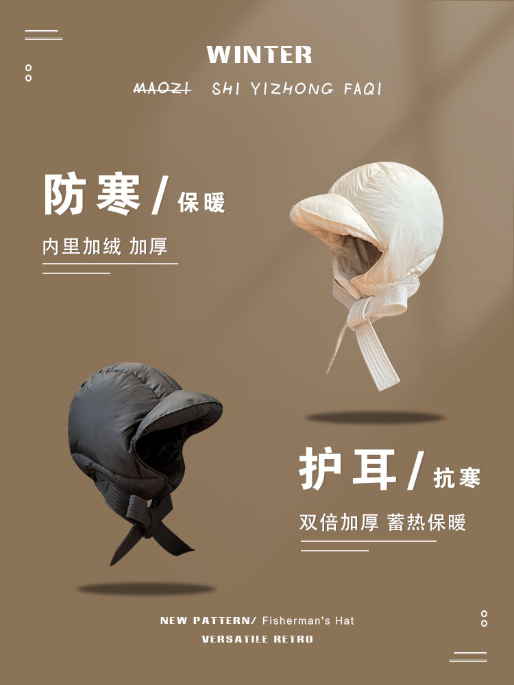 Удерживающая тепло стеганая ветрозащитная шапка с пухом, лыжный ремень, увеличенная толщина, в корейском стиле