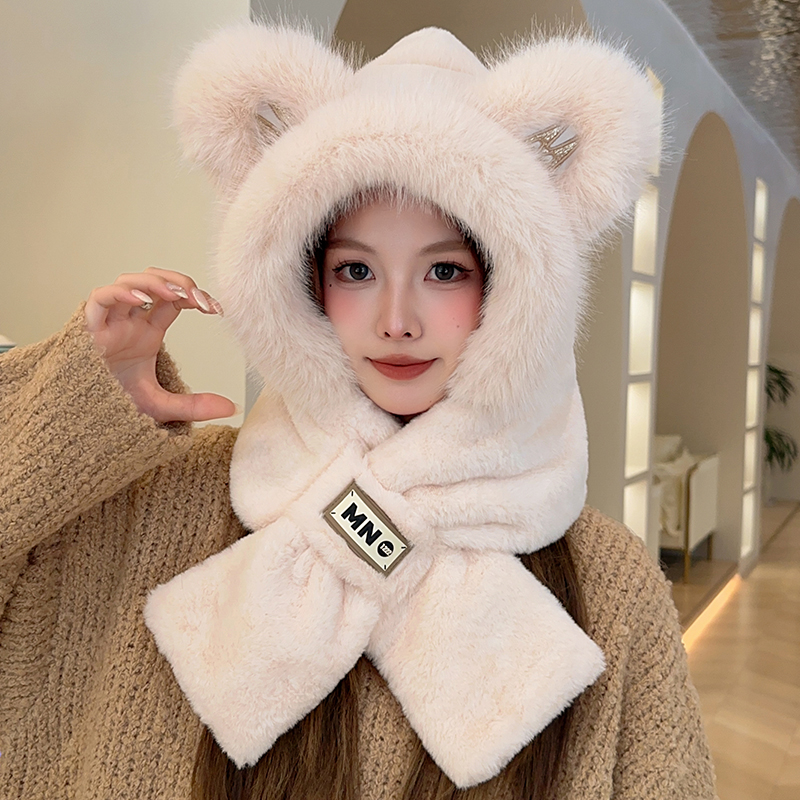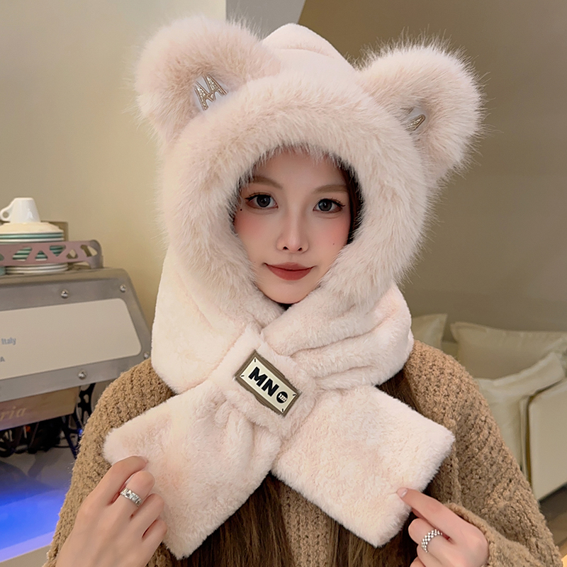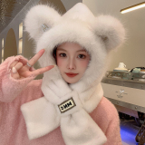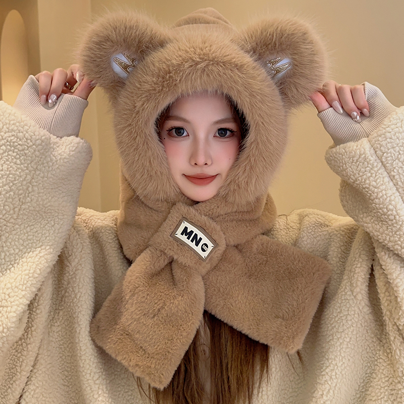 Шапка, удерживающий тепло бархатный демисезонный милый шарф, с медвежатами, коллекция 2023