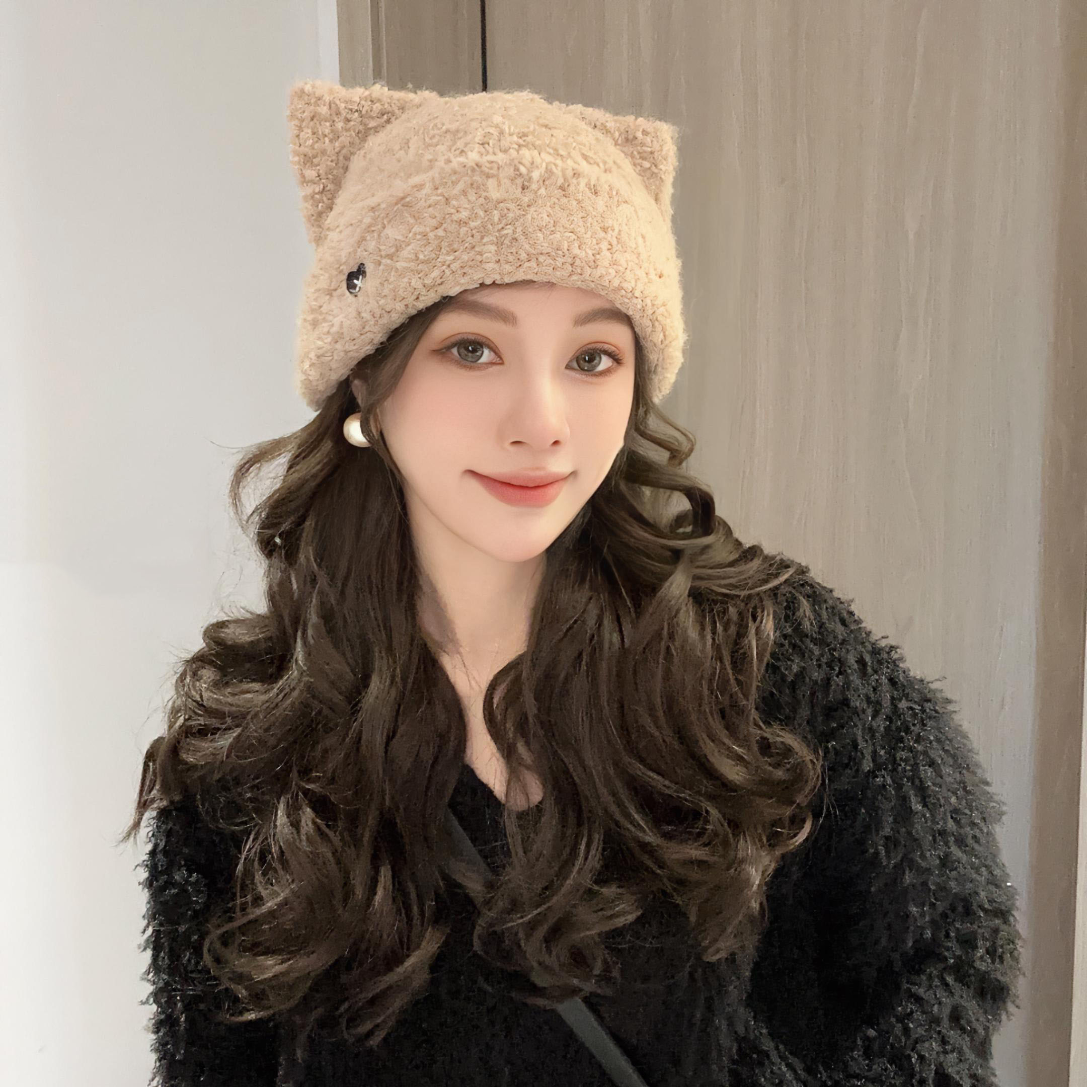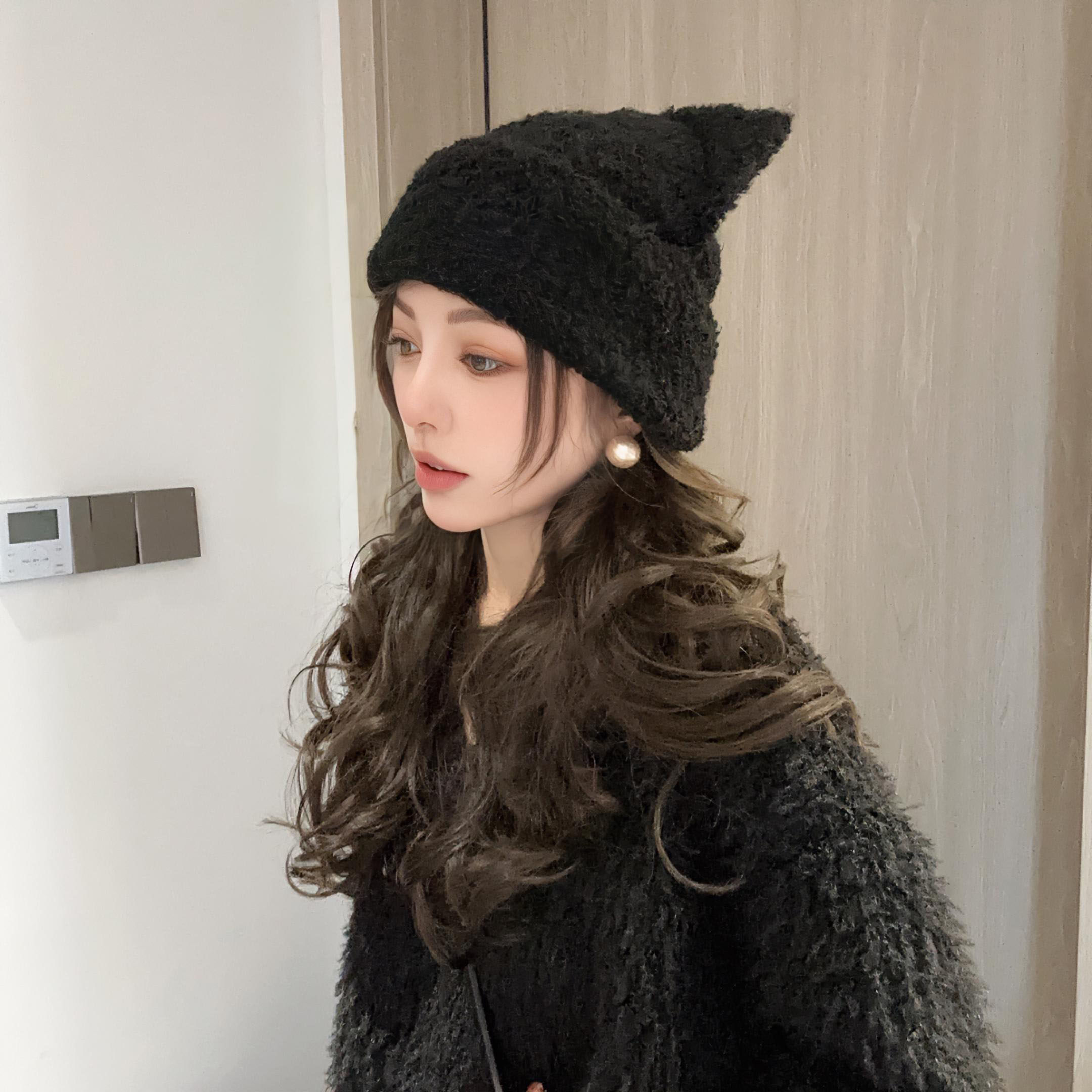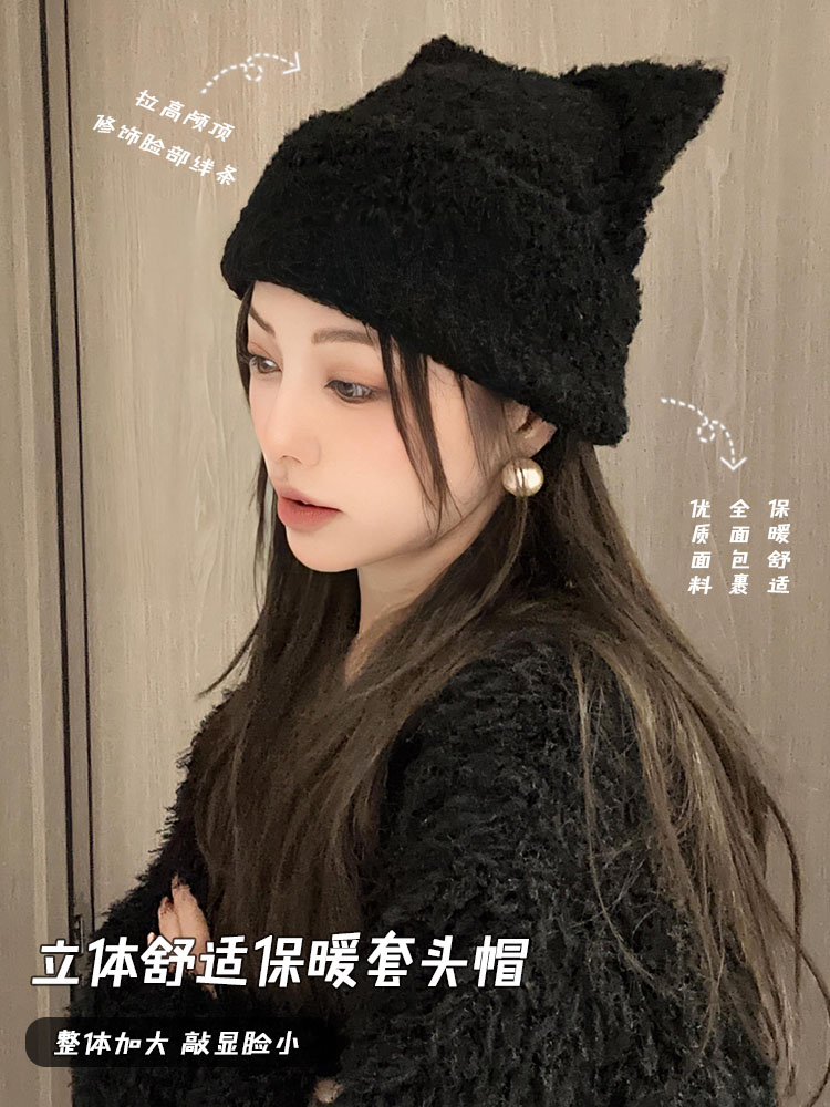 Трикотажная японская милая шерстяная демисезонная удерживающая тепло вязаная шапка, увеличенная толщина