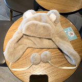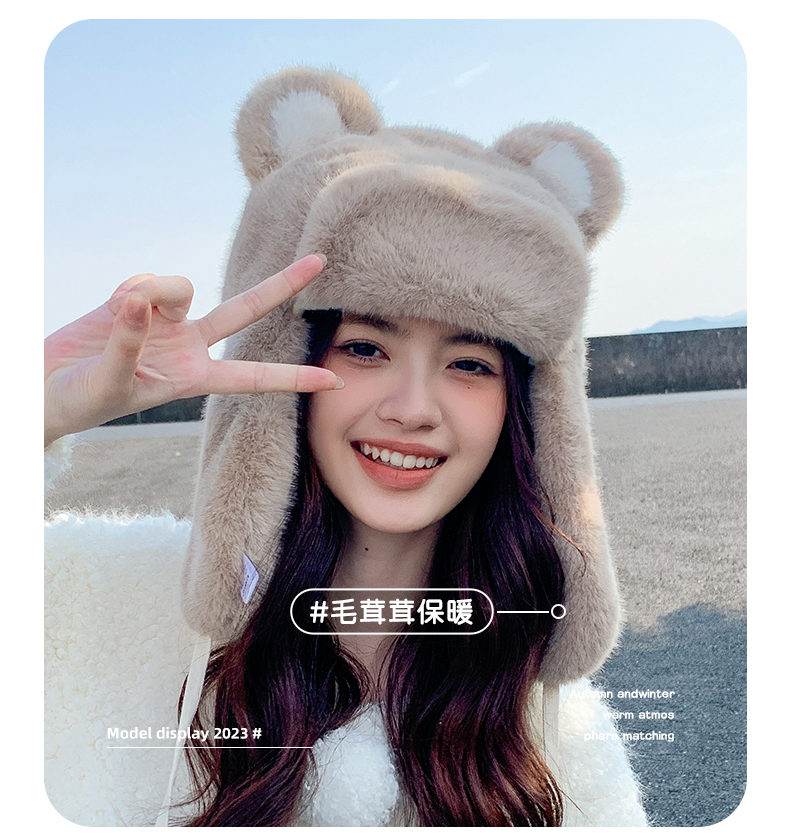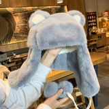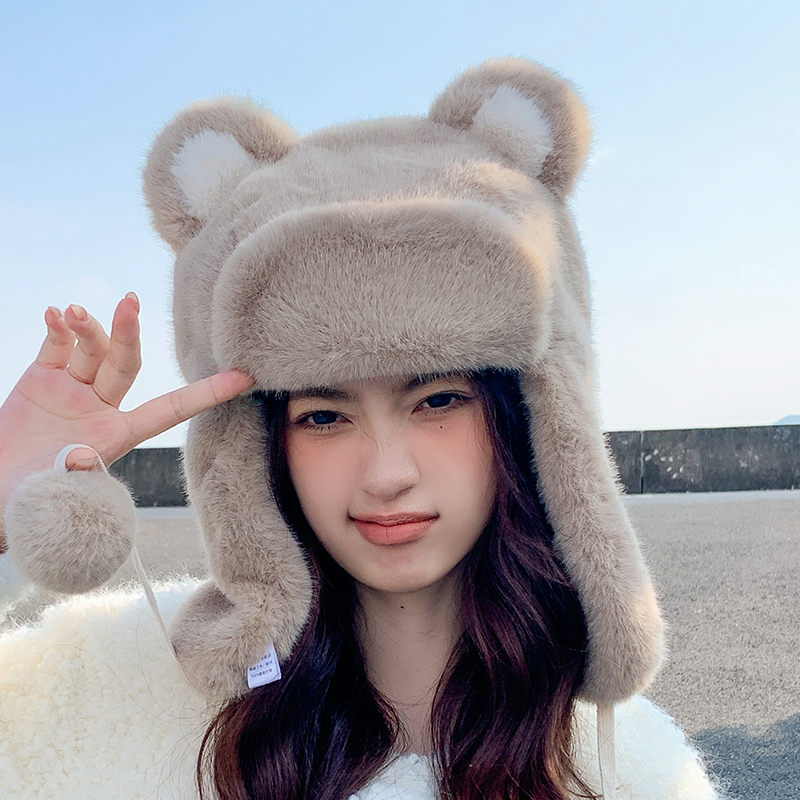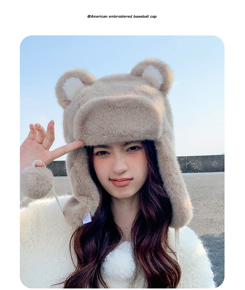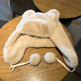Бархатная зимняя удерживающая тепло милая шапка, с медвежатами, увеличенная толщина