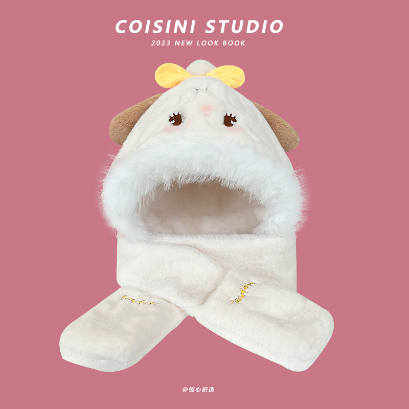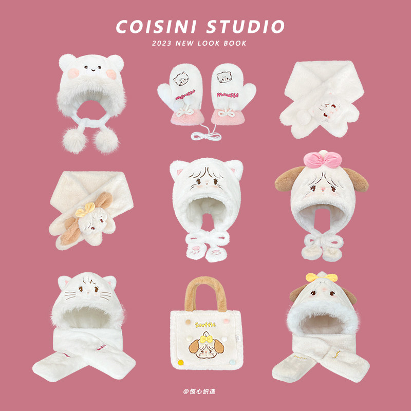 Оригинальная бархатная демисезонная удерживающая тепло шапка, удерживающий тепло милый шарф, комплект, 3 предмета