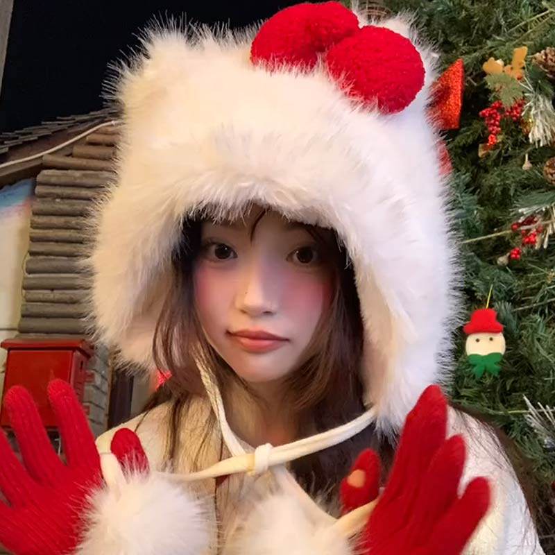 Hello Kitty, атмосферная зимняя бархатная милая удерживающая тепло шапка, коллекция 2023