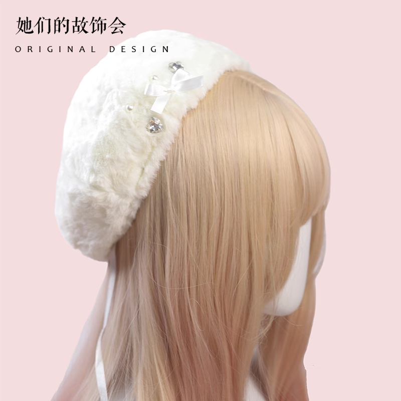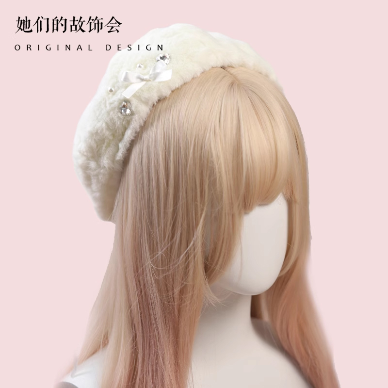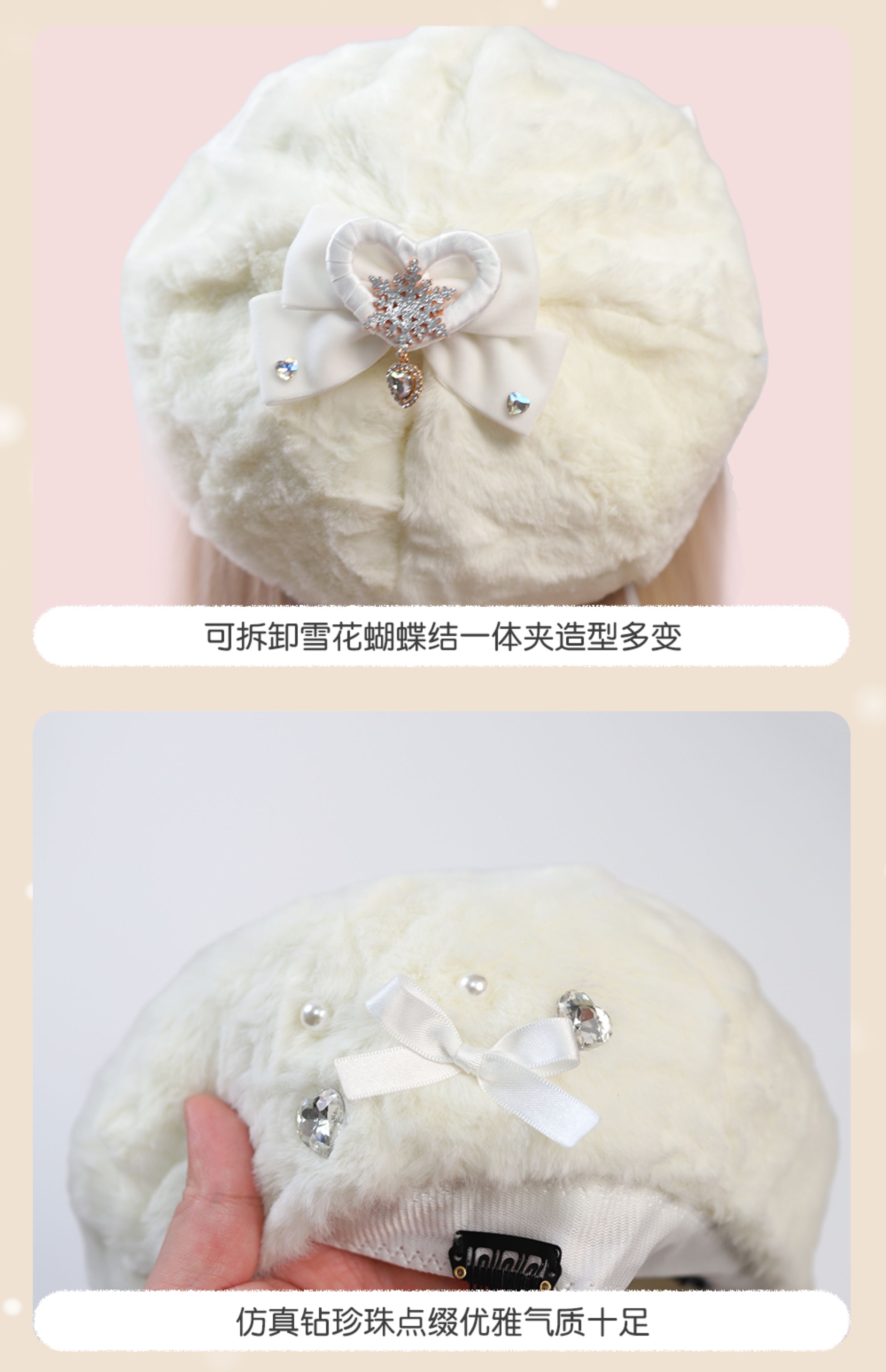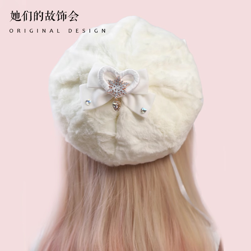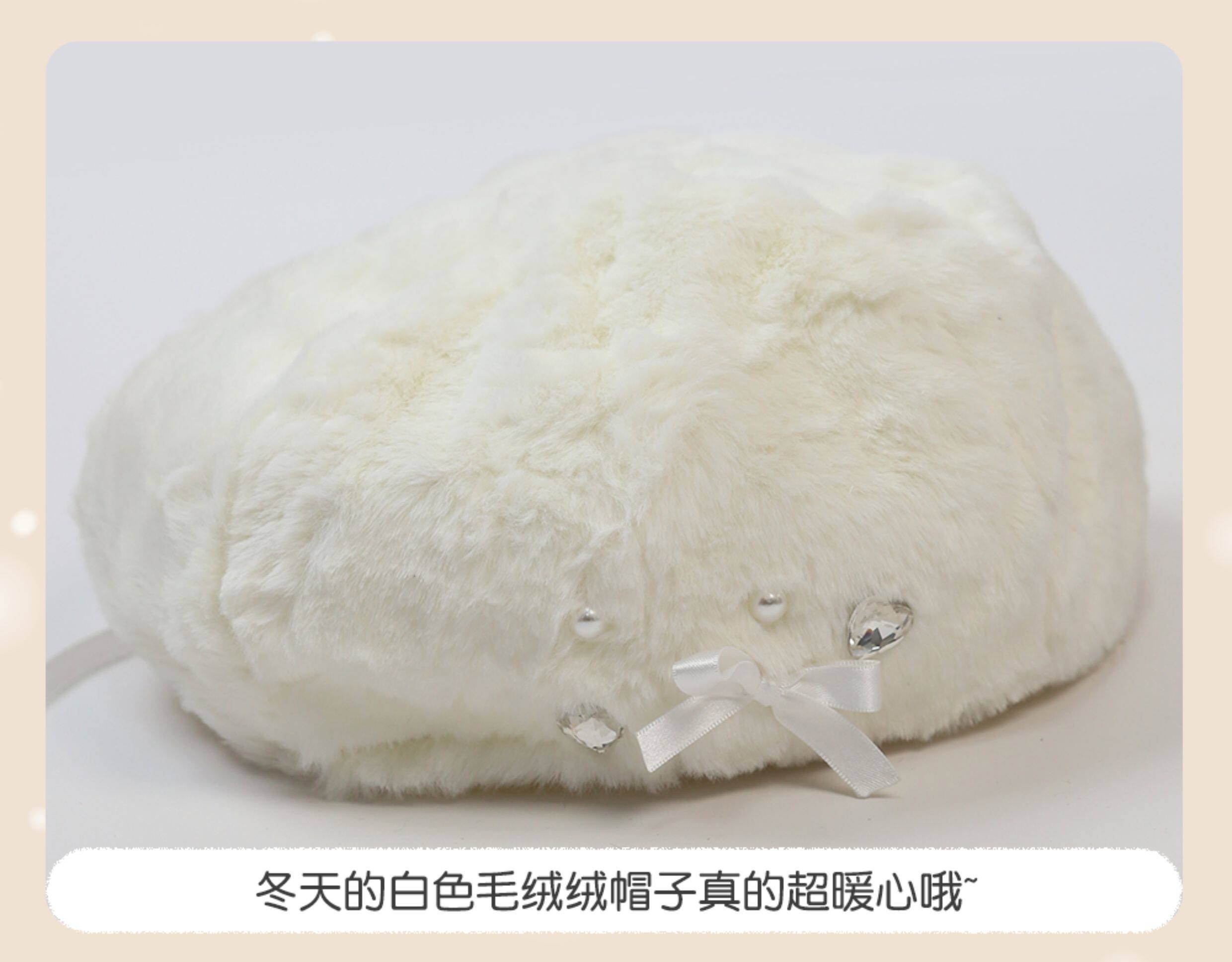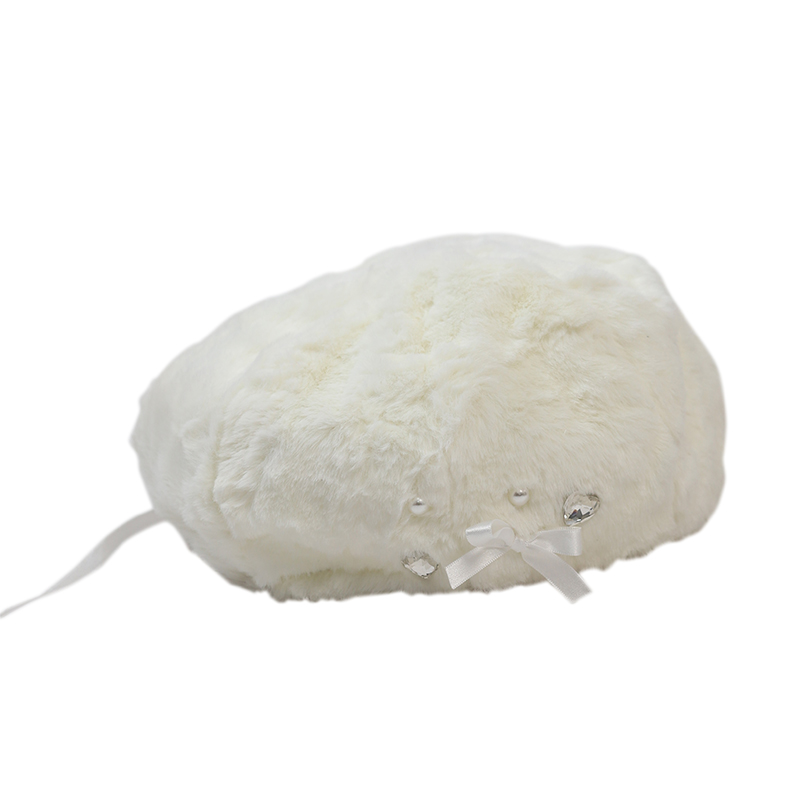 Демисезонный бархатный оригинальный берет из жемчуга, шапка с бантиком, со снежинками