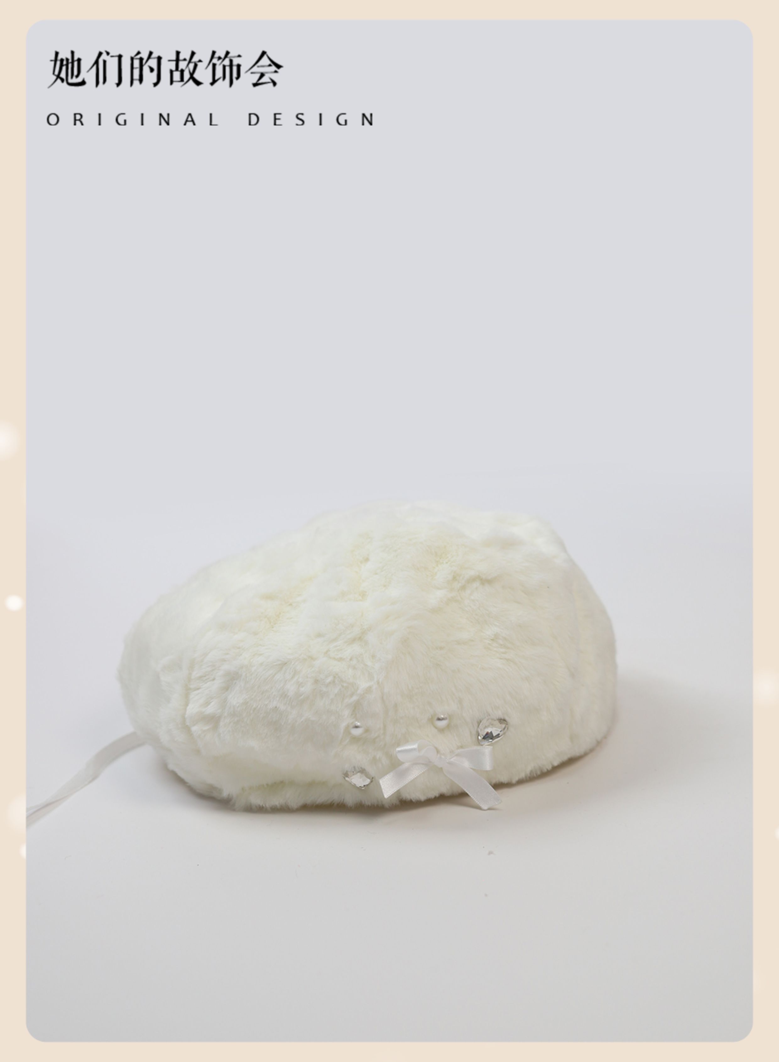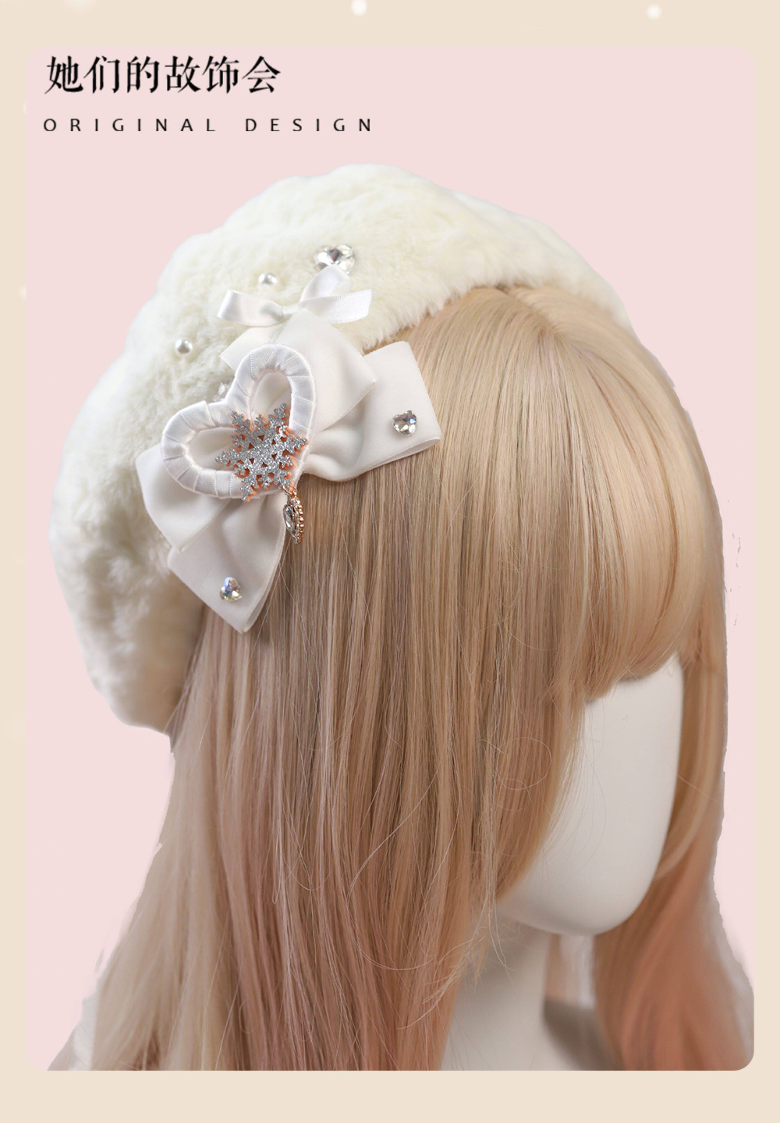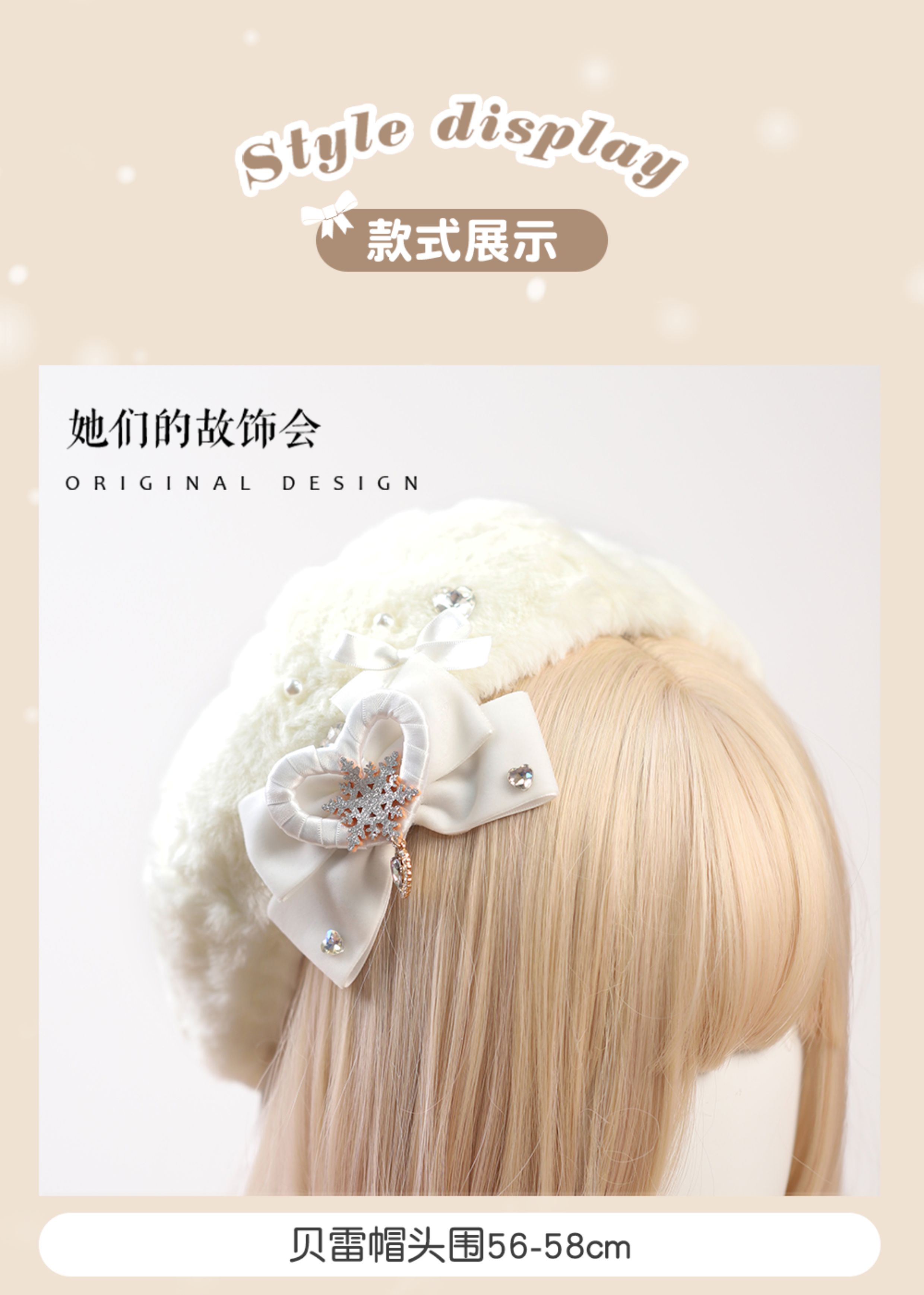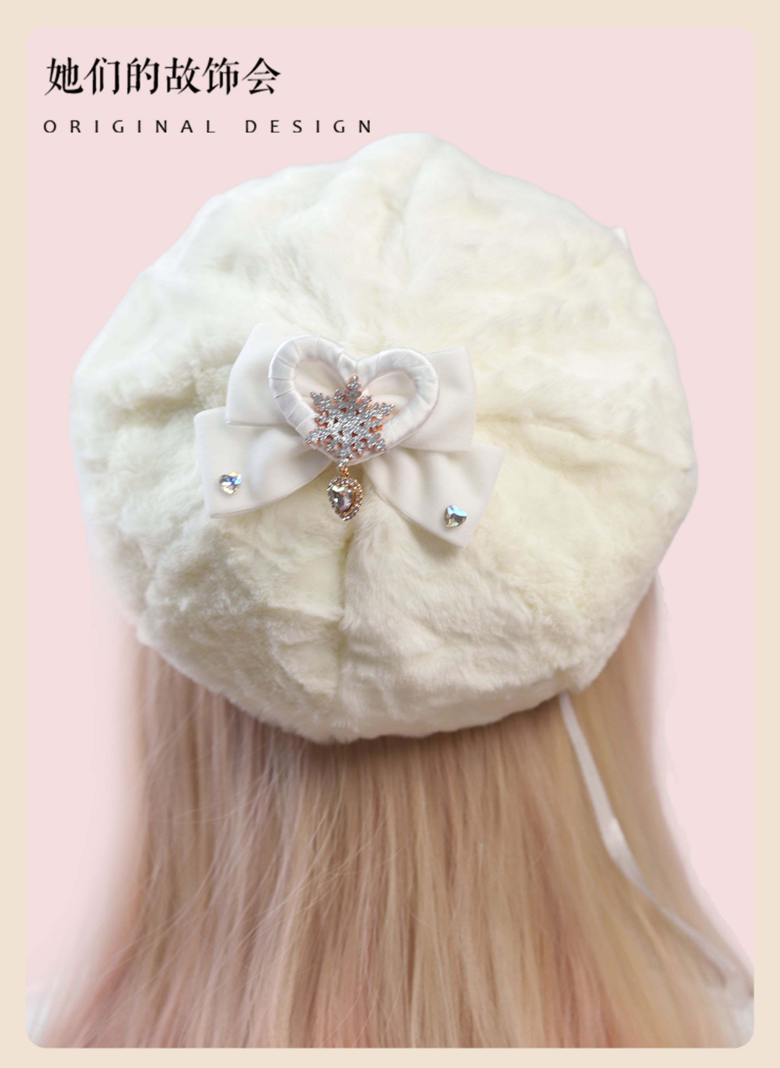 Демисезонный бархатный оригинальный берет из жемчуга, шапка с бантиком, со снежинками