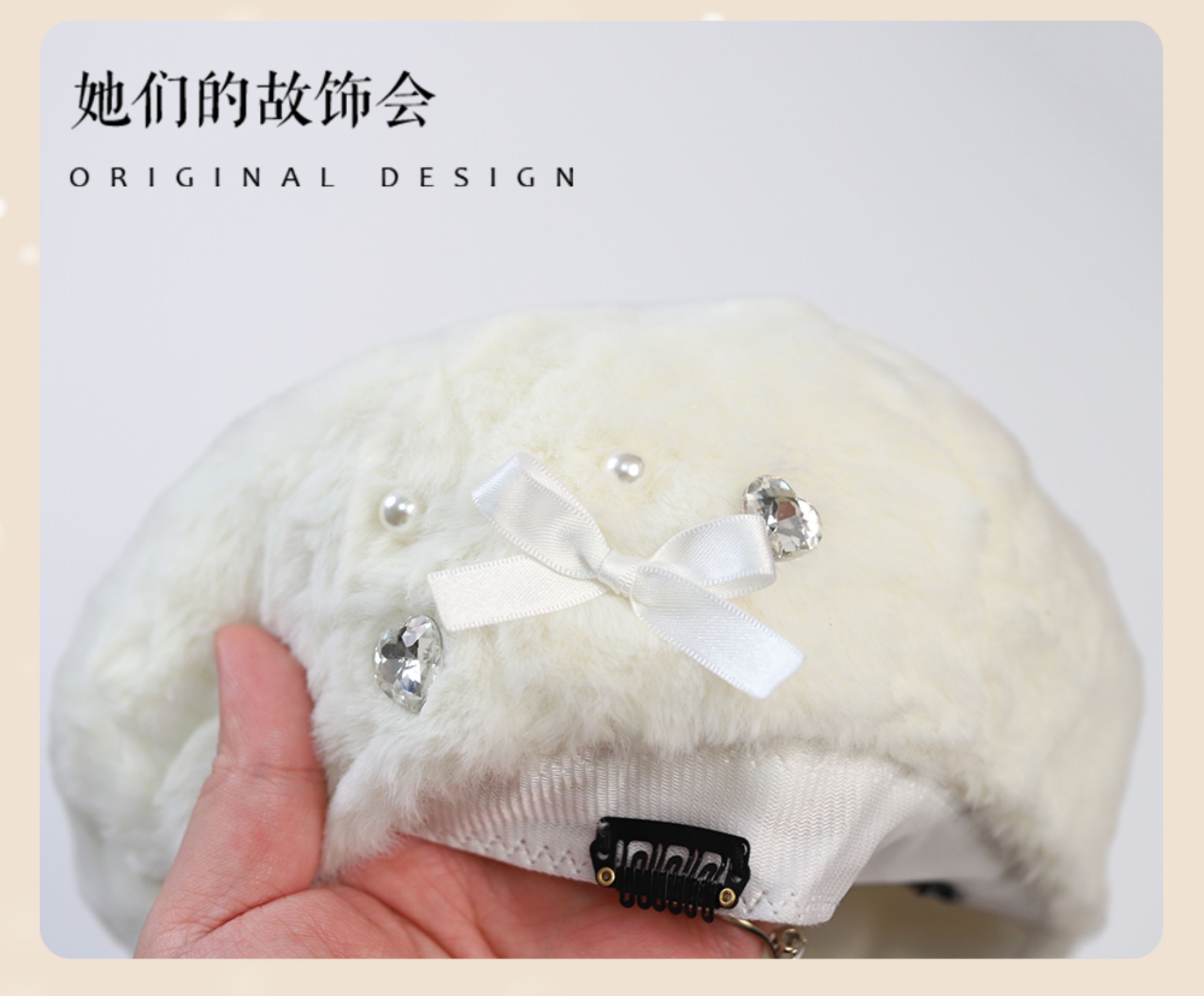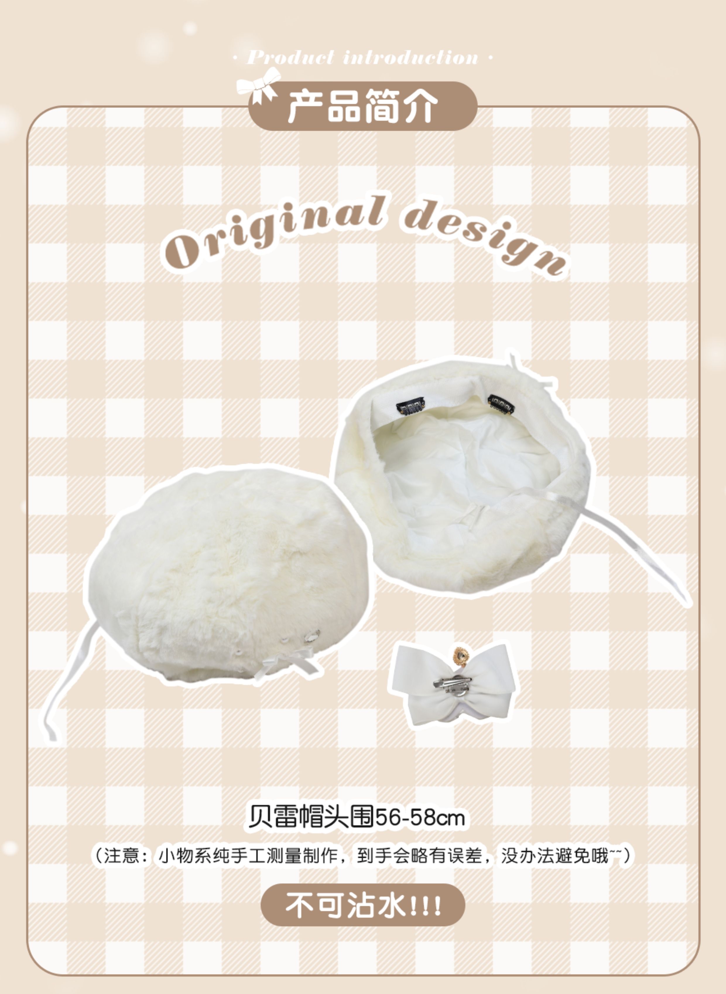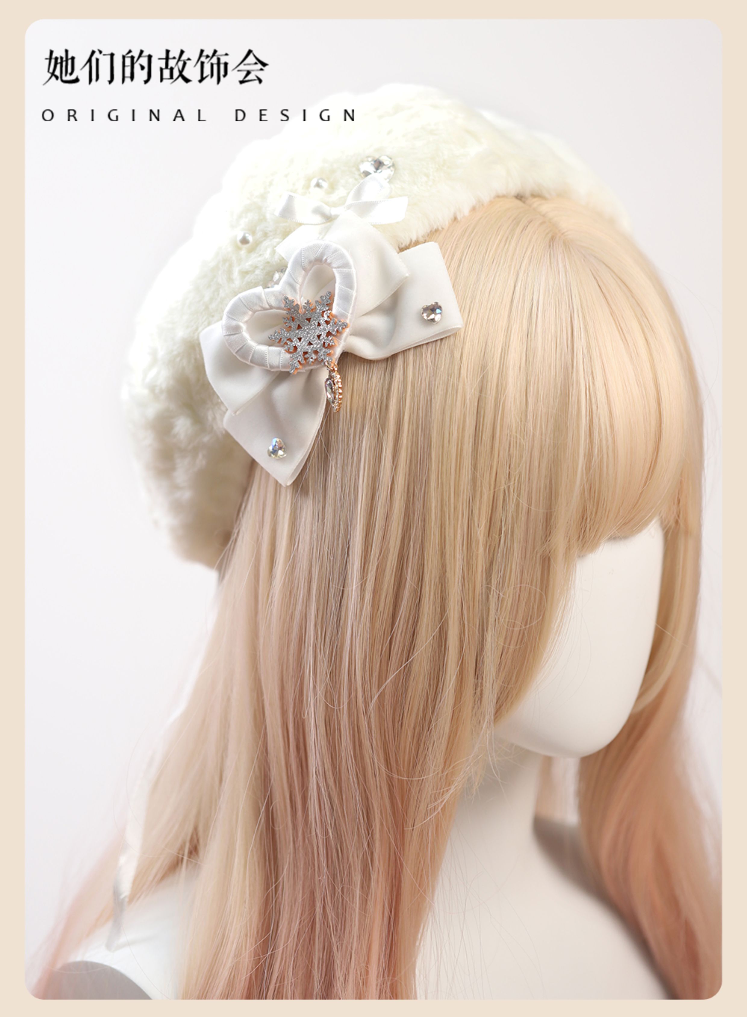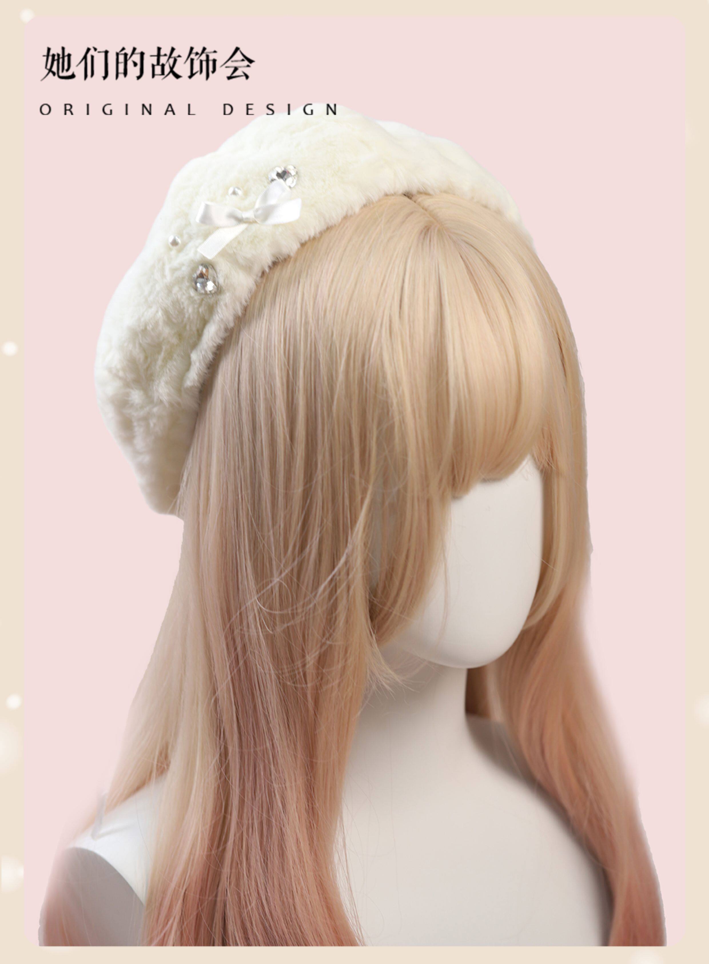 Демисезонный бархатный оригинальный берет из жемчуга, шапка с бантиком, со снежинками
