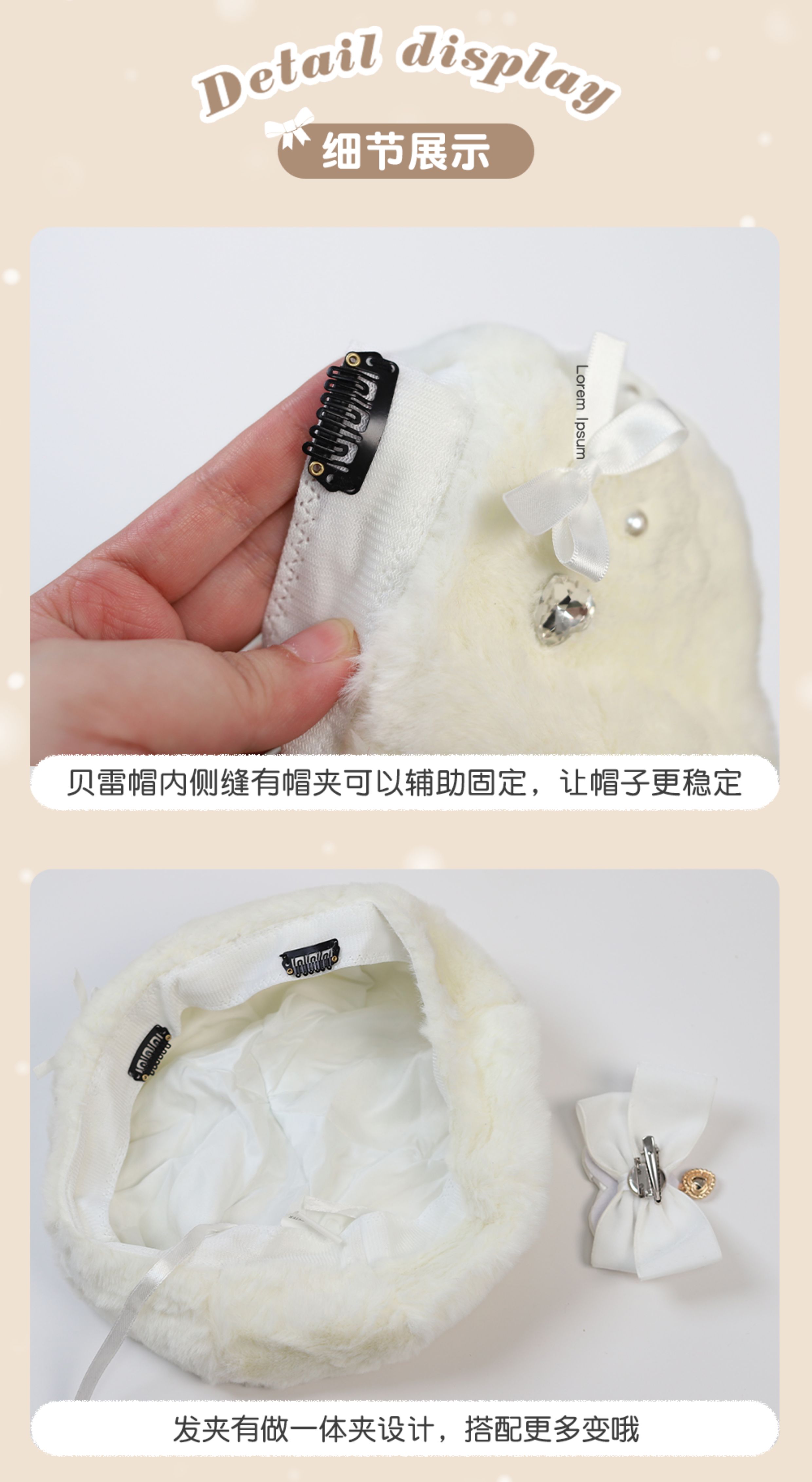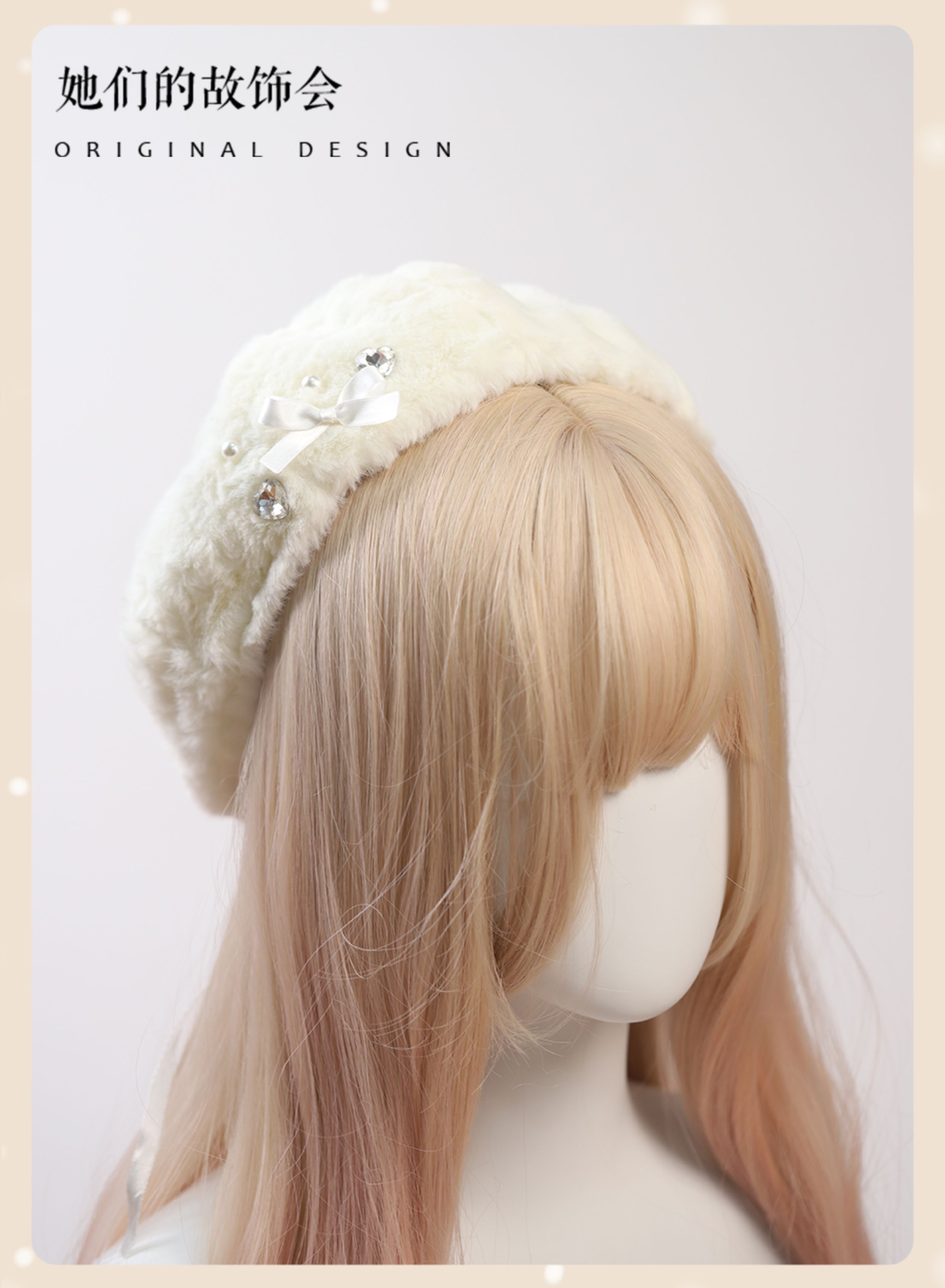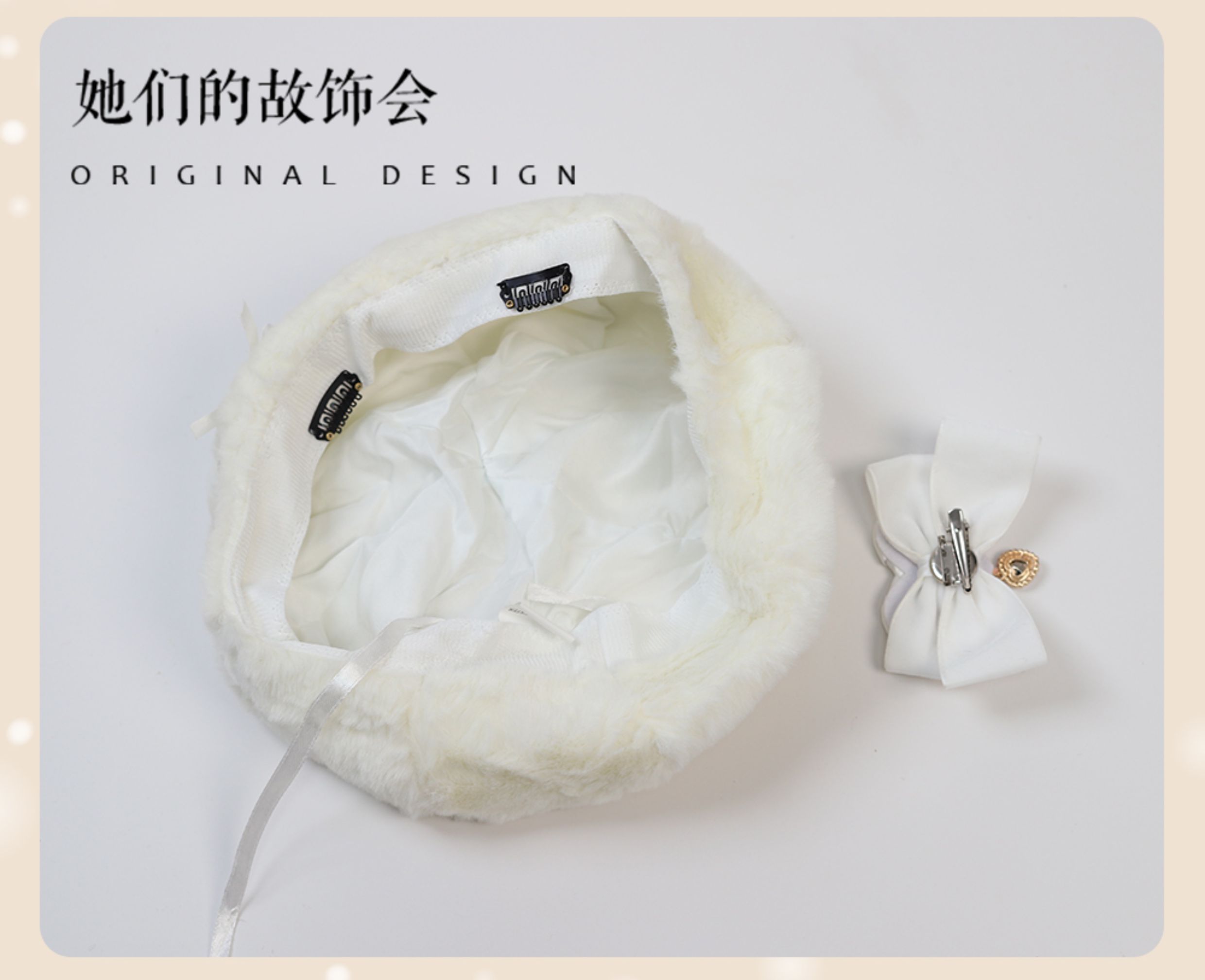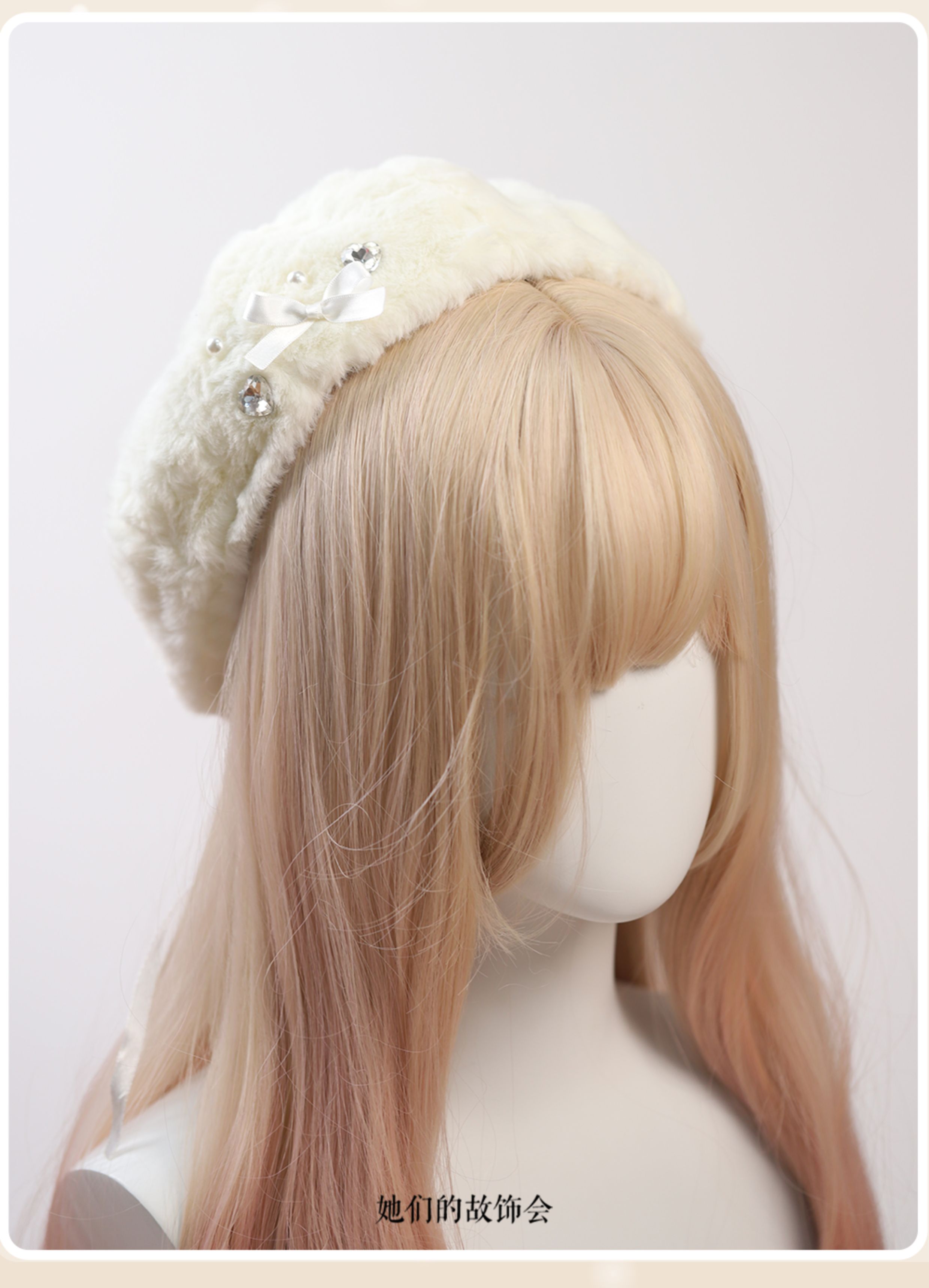 Демисезонный бархатный оригинальный берет из жемчуга, шапка с бантиком, со снежинками