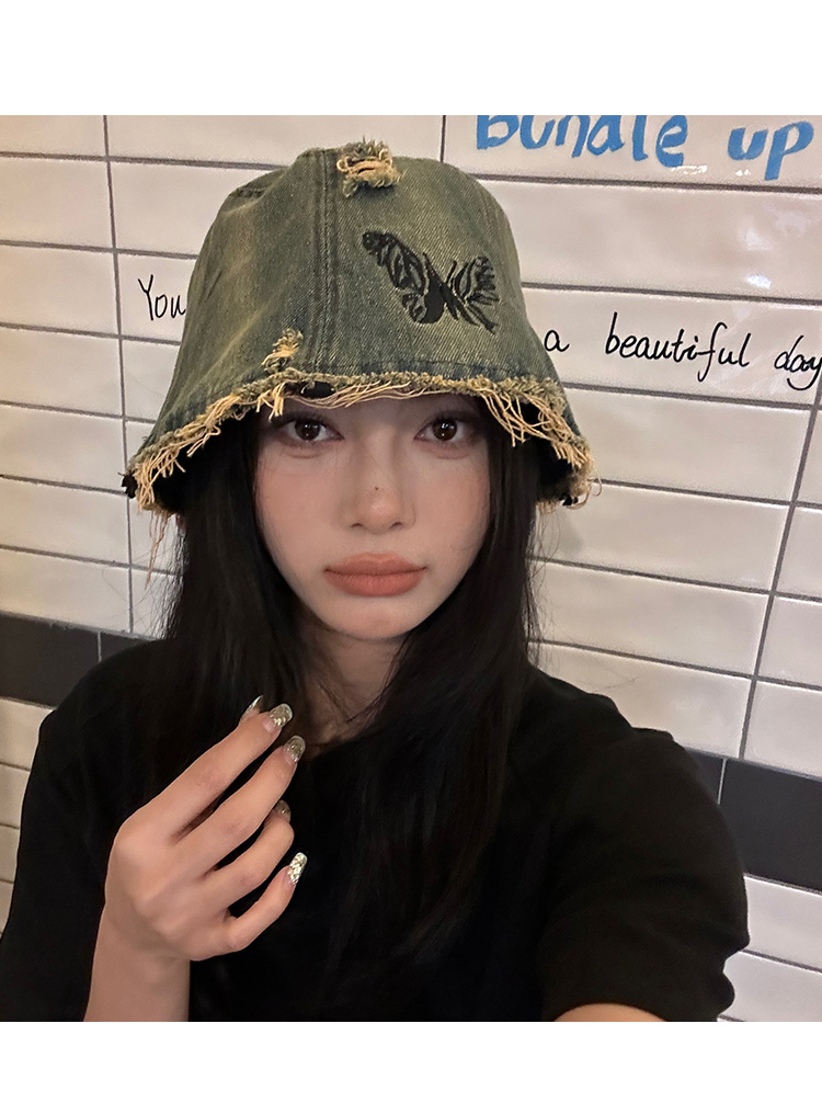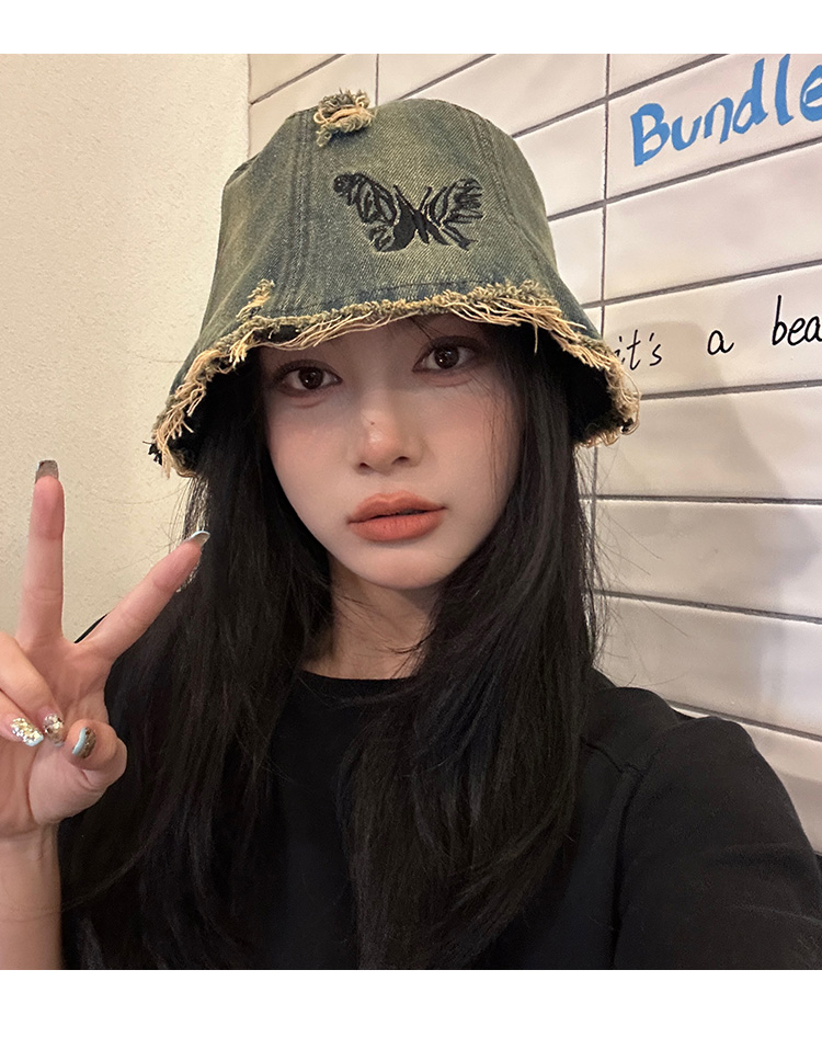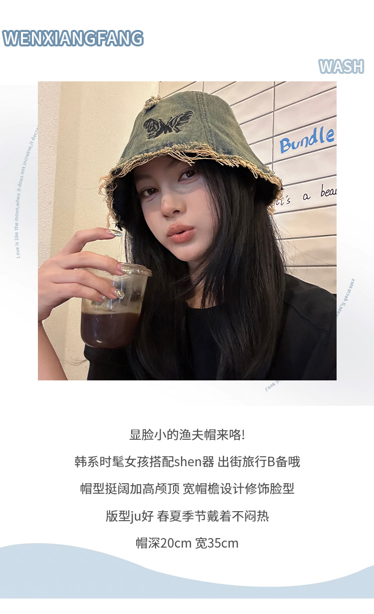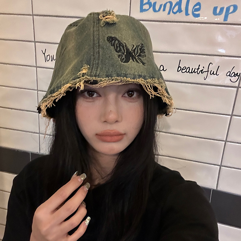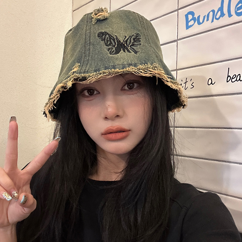 Ретро джинсовое ведро, шапка, в корейском стиле, с вышивкой