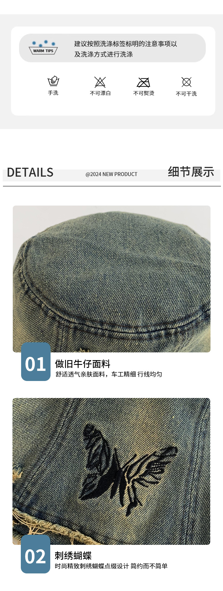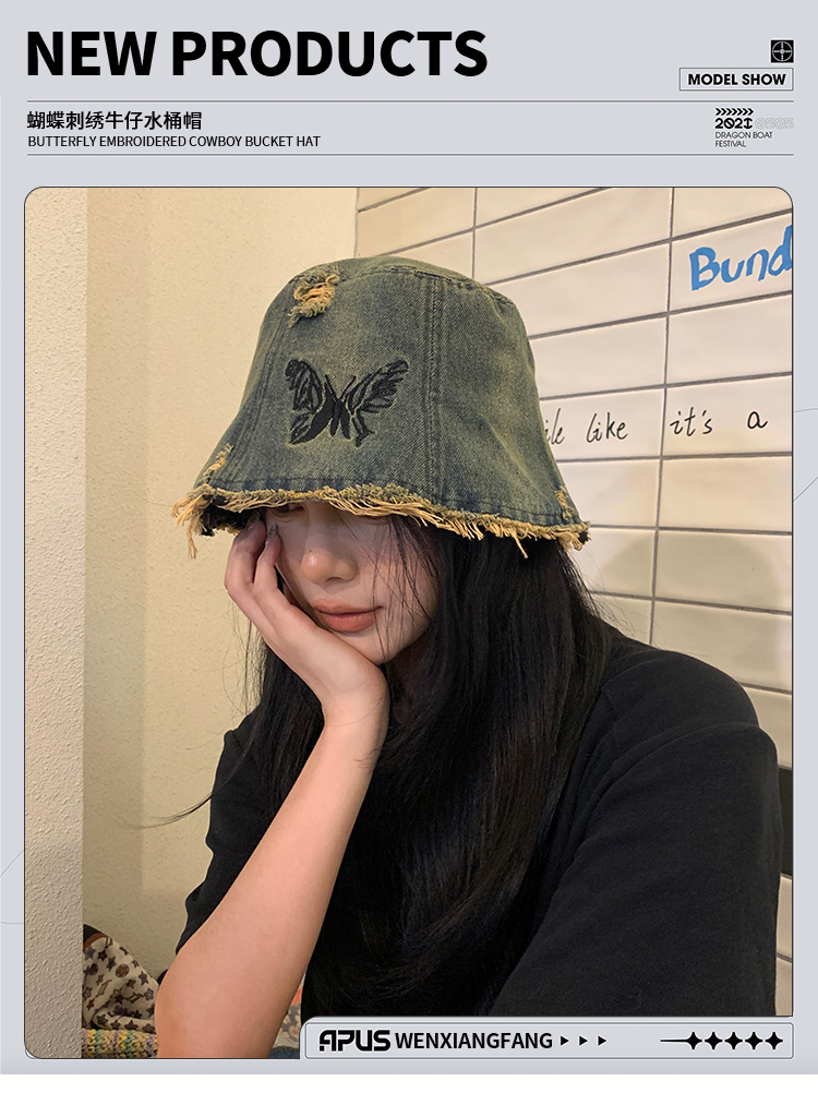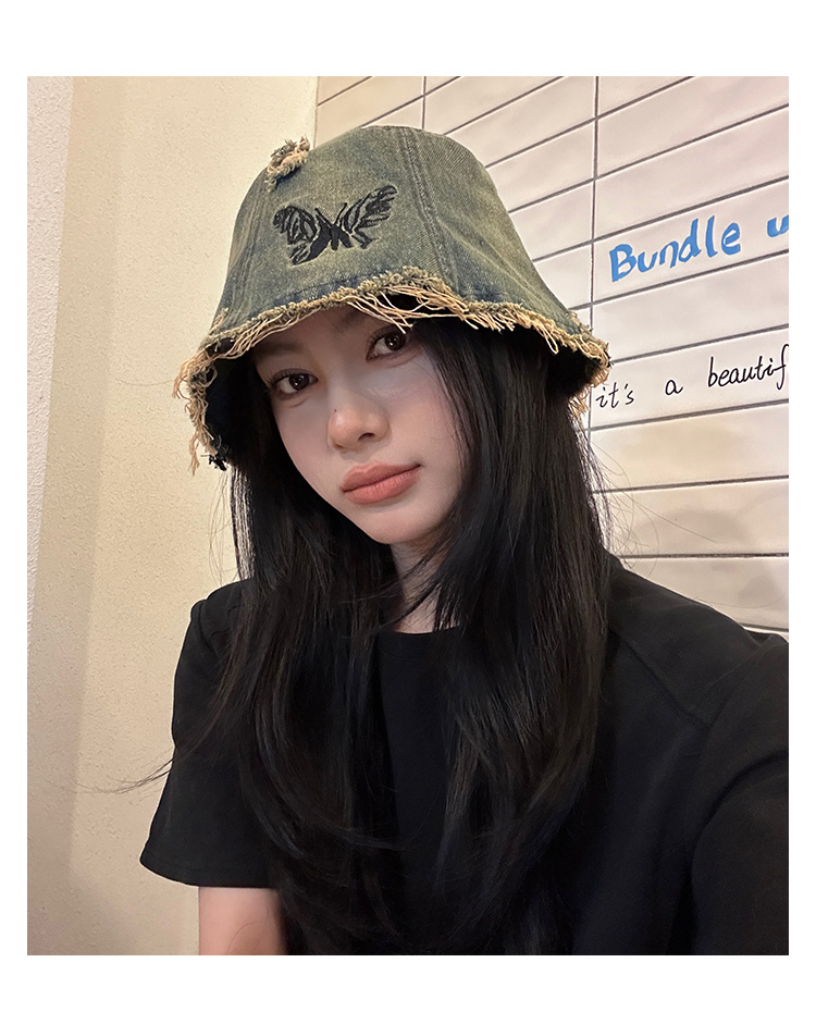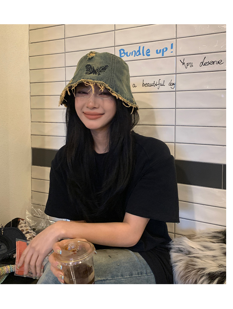 Ретро джинсовое ведро, шапка, в корейском стиле, с вышивкой