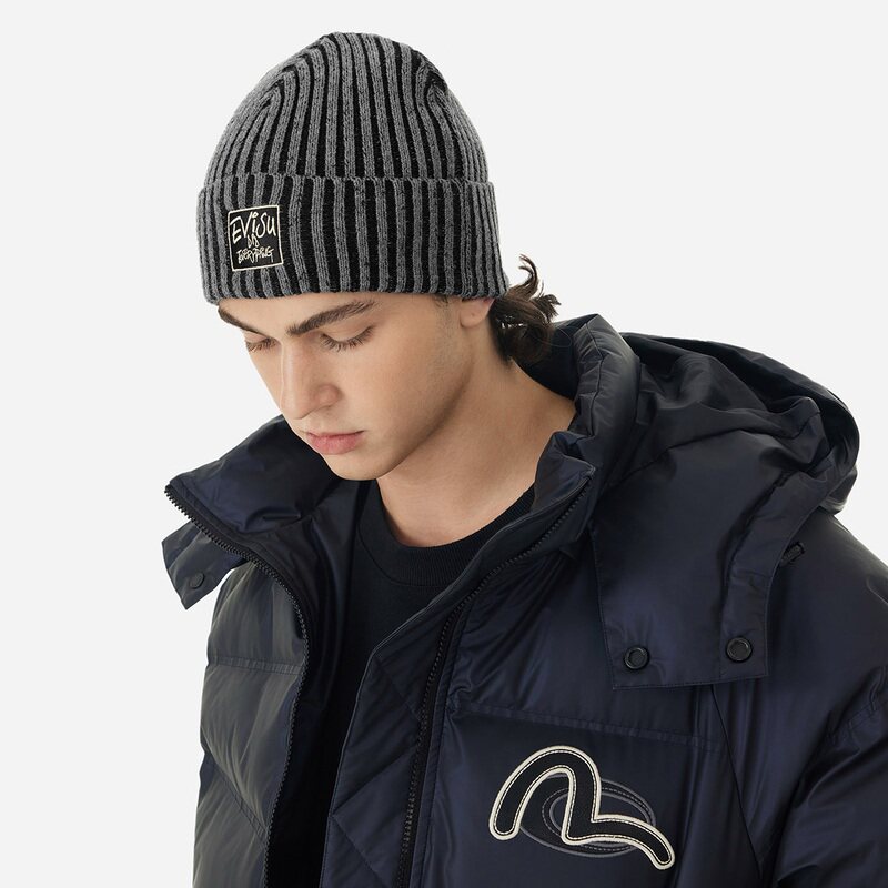EVISU2024 зимняя новая вышитая и двухцветная шапка прямой вязки 2EAHTU4HT1127XXCX