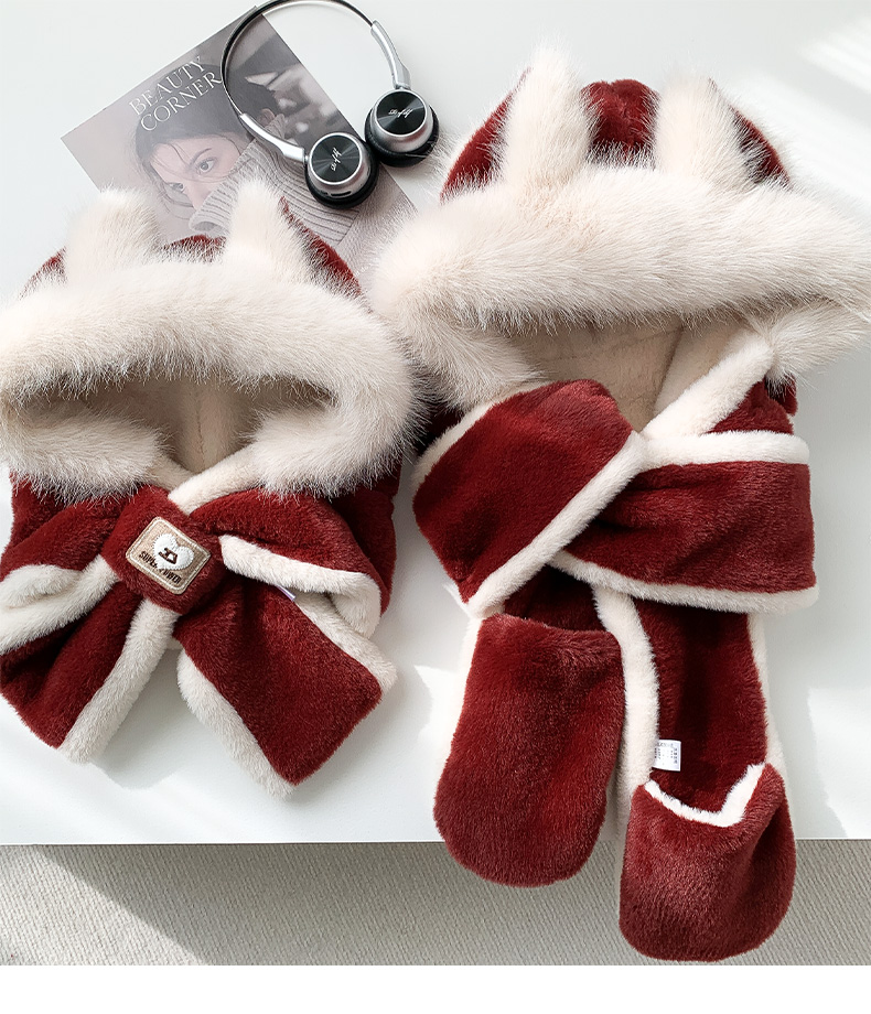 Милая бархатная шапка, демисезонный утепленный шарф