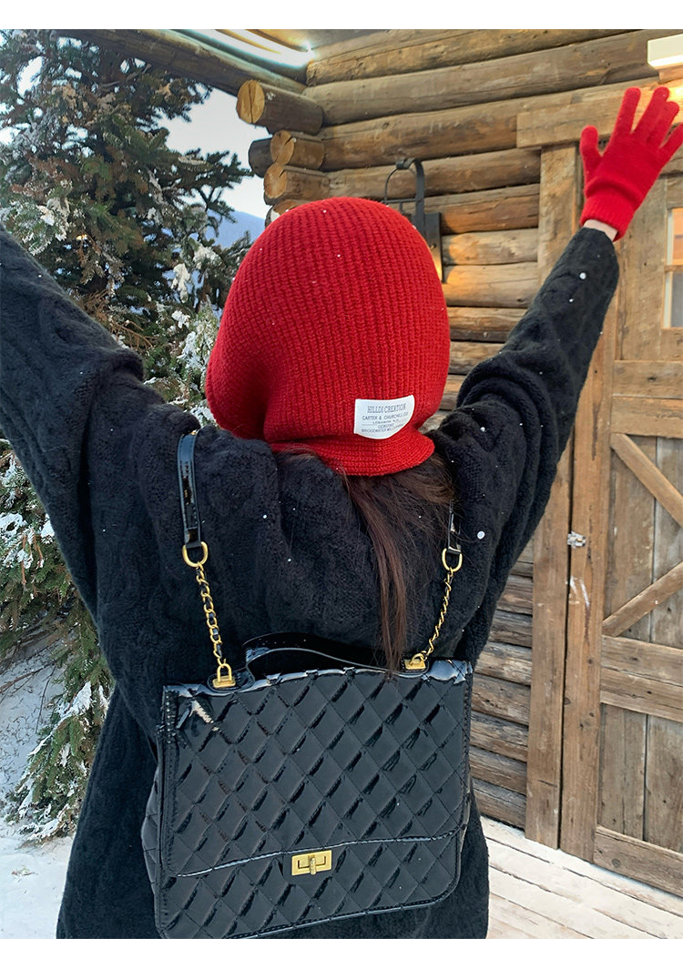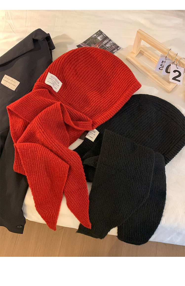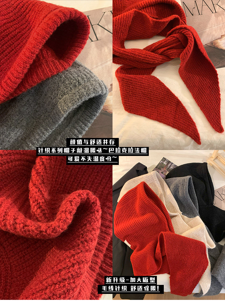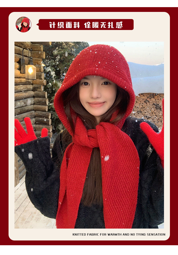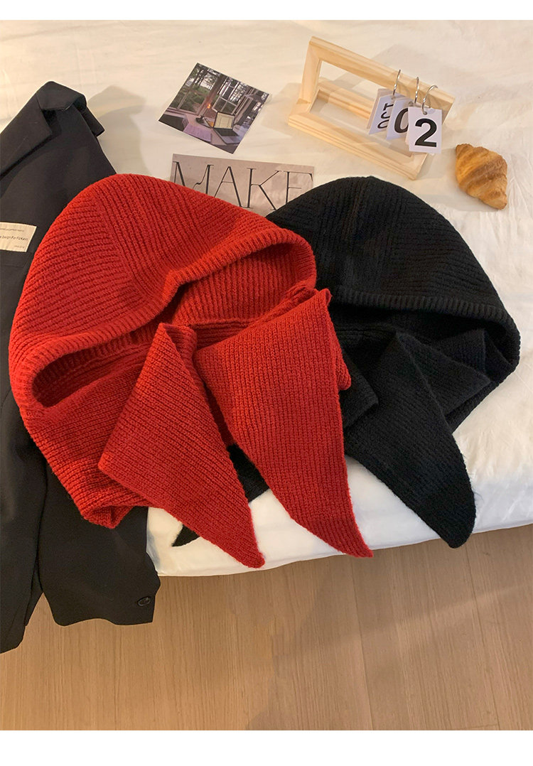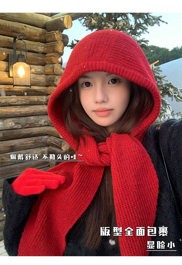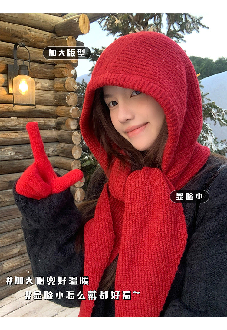 Красный демисезонный удерживающий тепло шерстяной шарф, зимняя вязаная шапка с капюшоном