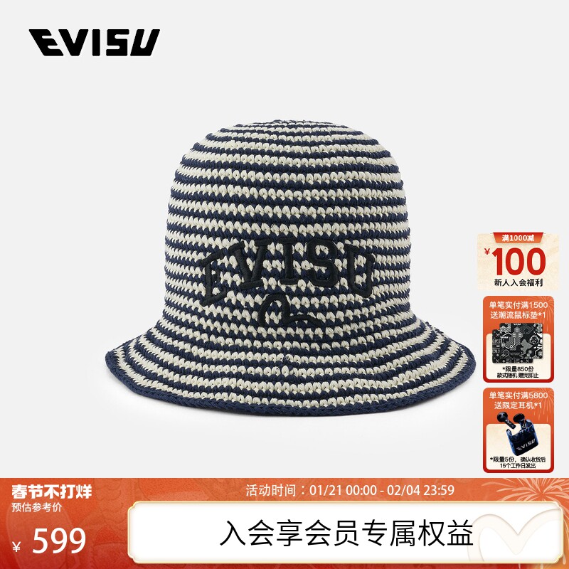 EVISU Lucky God 2025 Весна Новый продукт Торговая марка Чайка Панама с вышивкой 2ESHTM5HT1159XXCT