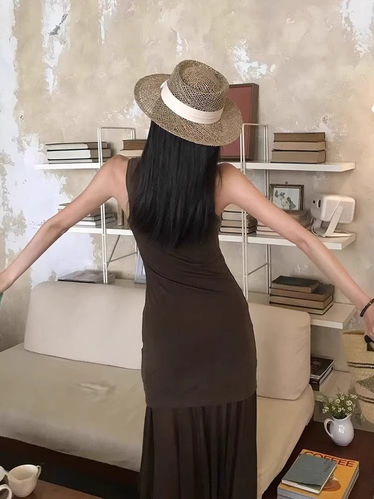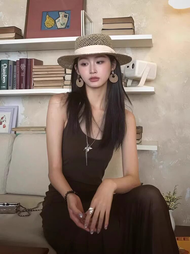 Французская соломенная шляпа с плоским верхом в стиле «старые деньги» для женщин, летняя пляжная шляпа для отдыха на море, солнцезащитная шляпа с большими полями, солнцезащитная шляпа
