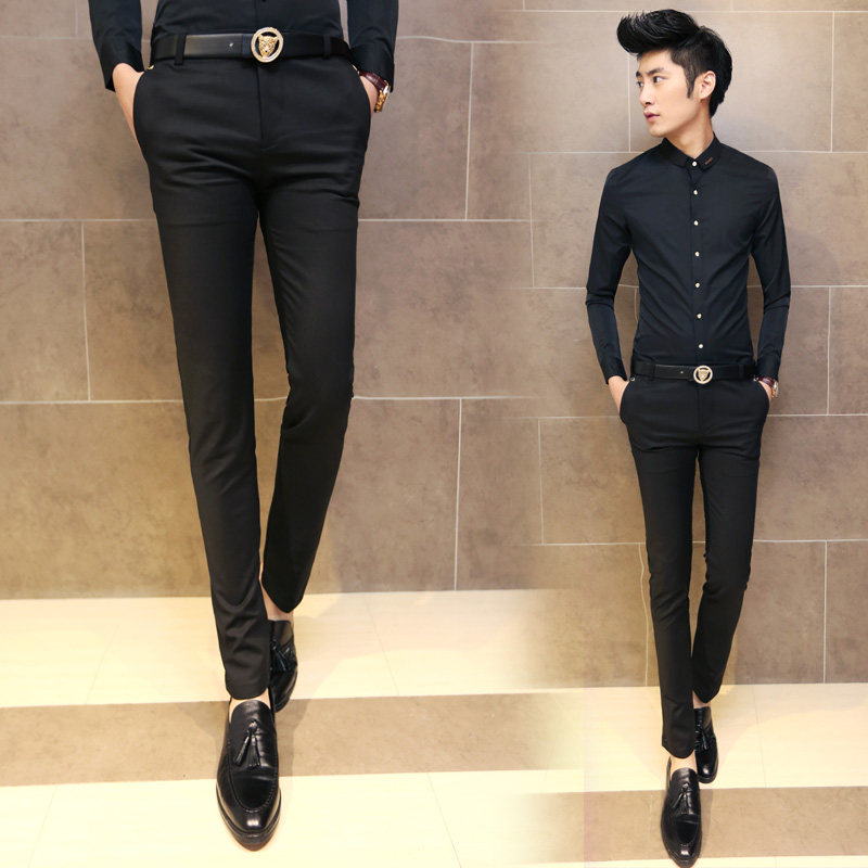 Случайные брюки Слимки маленькие брюки для ног корейский стиль прямые брюки модные мужские брюки Pure Cotton Youth 2017 Осенний новый осенний наряд