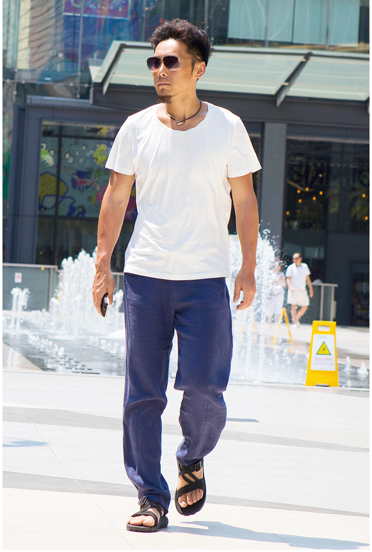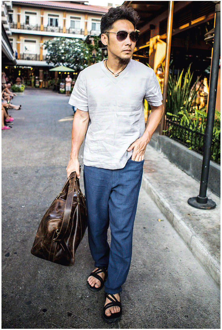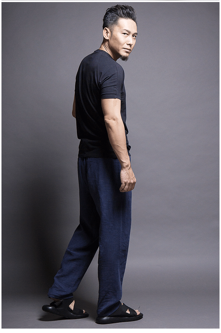 Мужские оригинальные штаны, ретро повседневные брюки, из хлопка и льна, свободный прямой крой