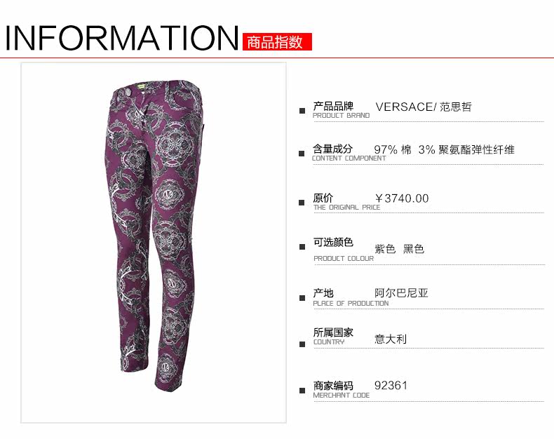 Versace/范思哲 Черные простые модные штаны A2GMB0K0 HK900189303