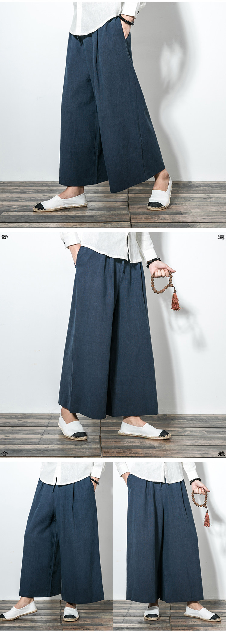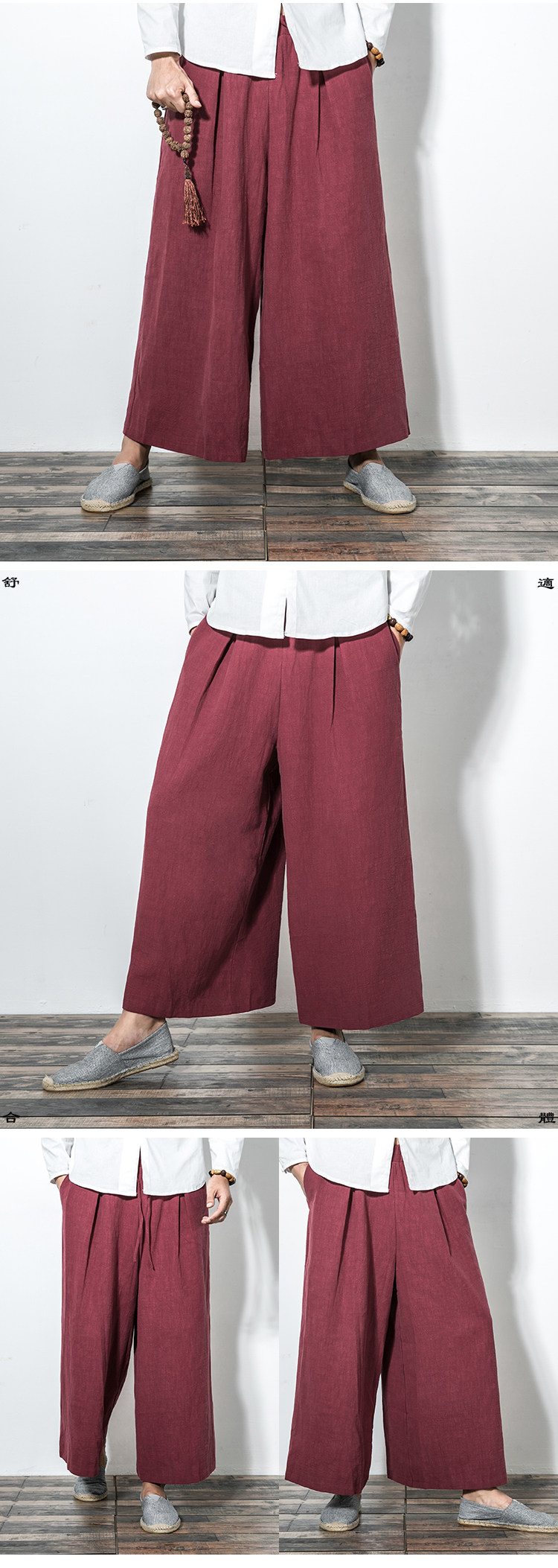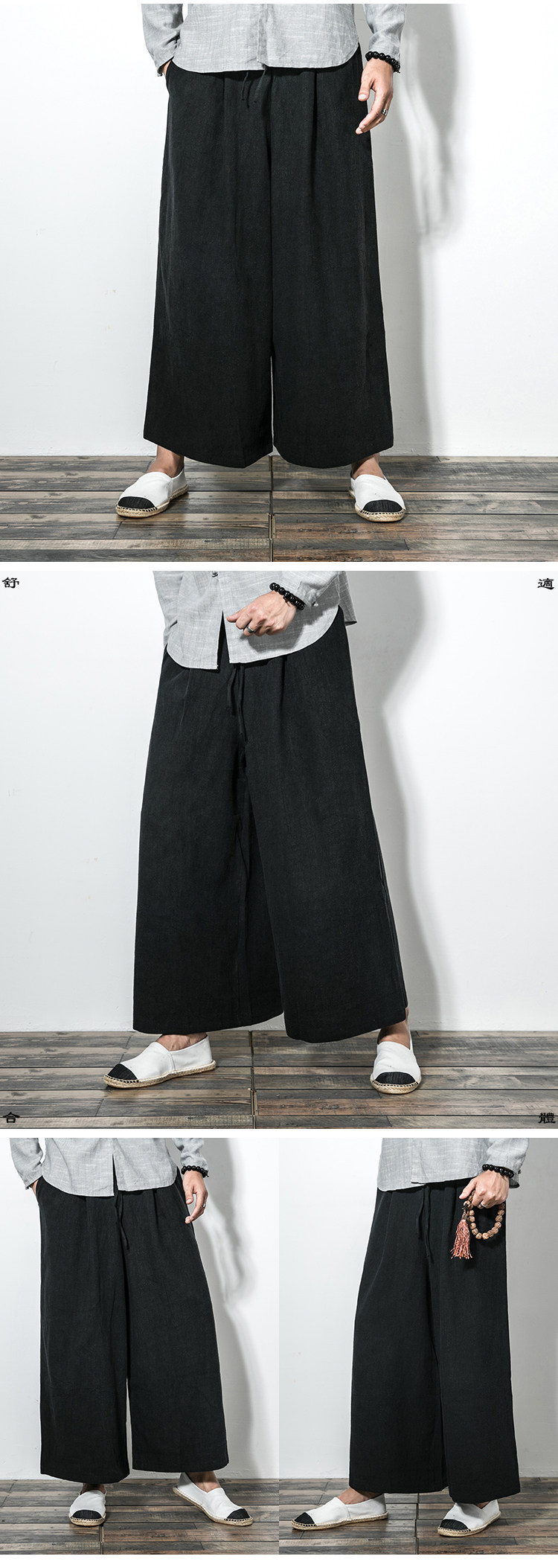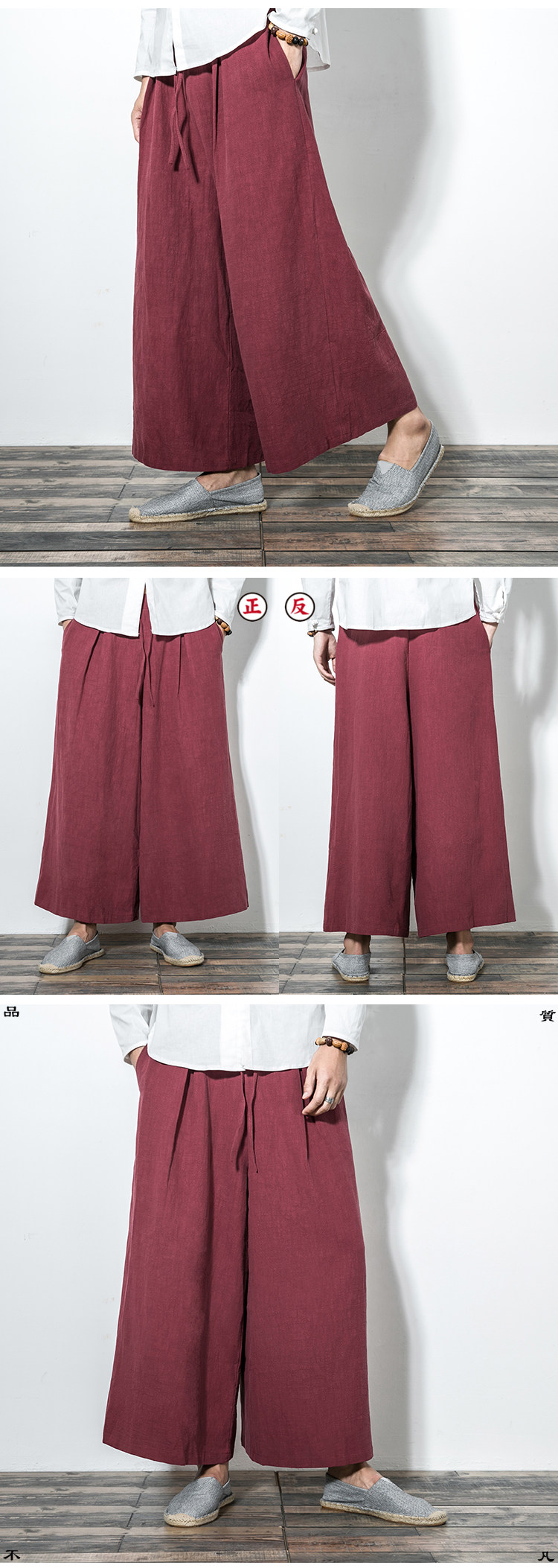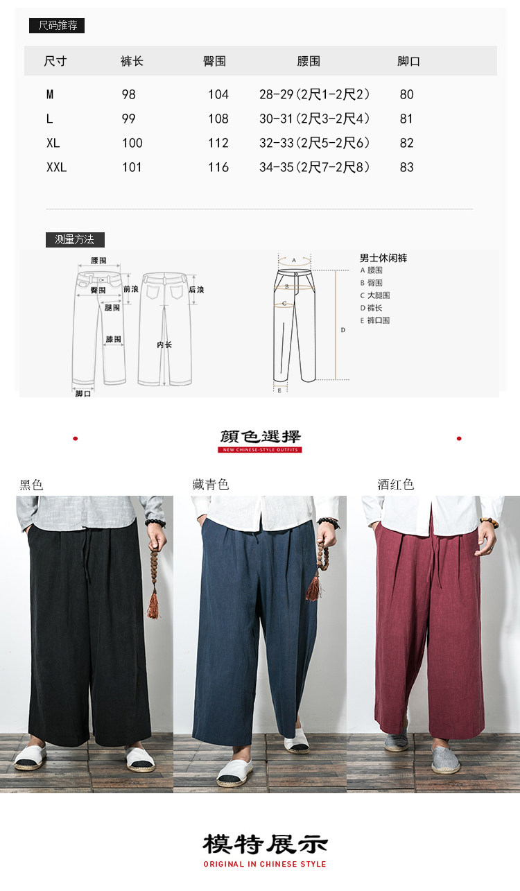 Китайские штаны-клёш, демисезонные штаны, юбка, китайский стиль, свободный крой, из хлопка и льна