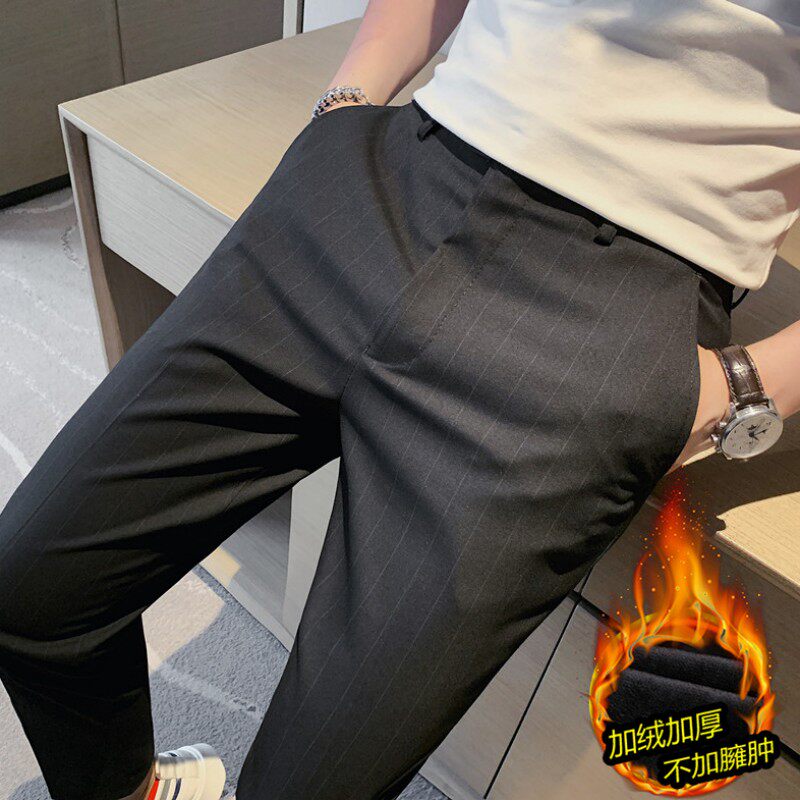 Мужские штаны, утепленные повседневные брюки для отдыха, трендовый костюм, в корейском стиле