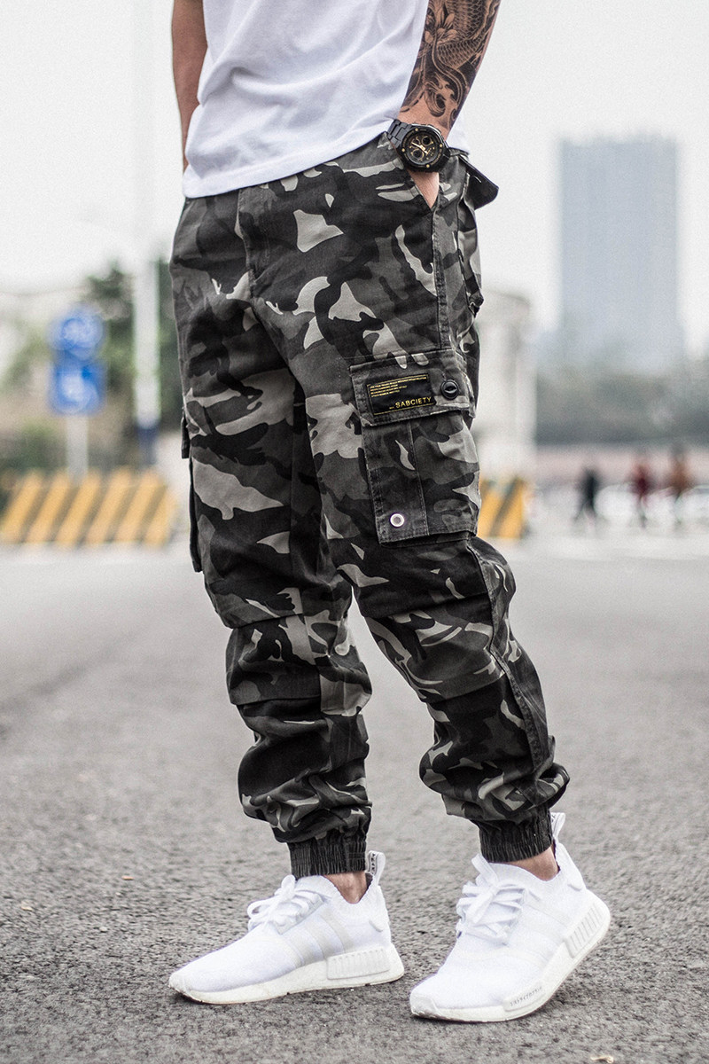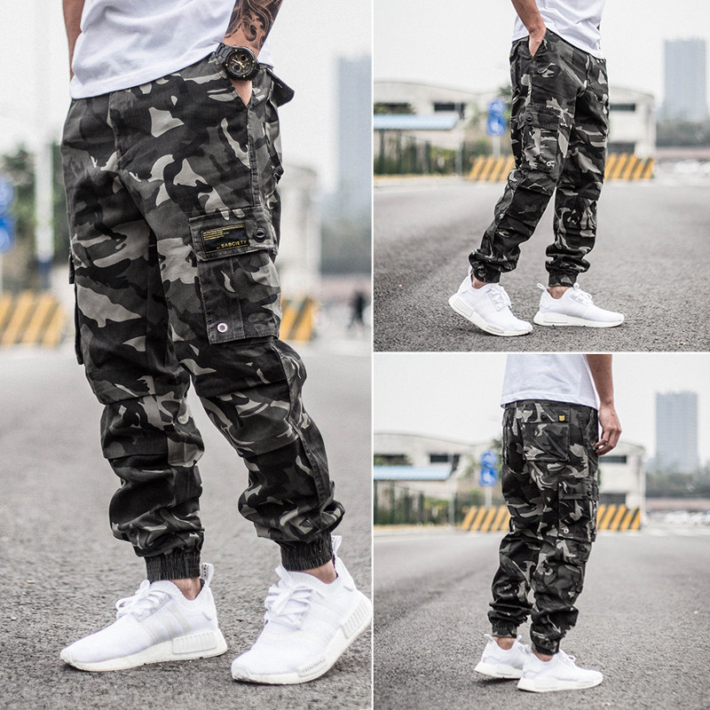 Камуфляжные штаны в стиле хип-хоп, свободный крой, в корейском стиле, облегающий крой