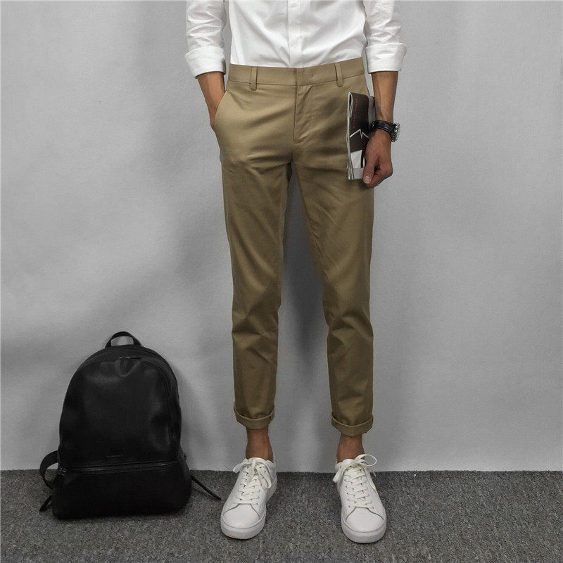 Осенние хлопковые хаки бежевые штаны, в корейском стиле, свободный прямой крой