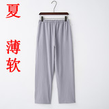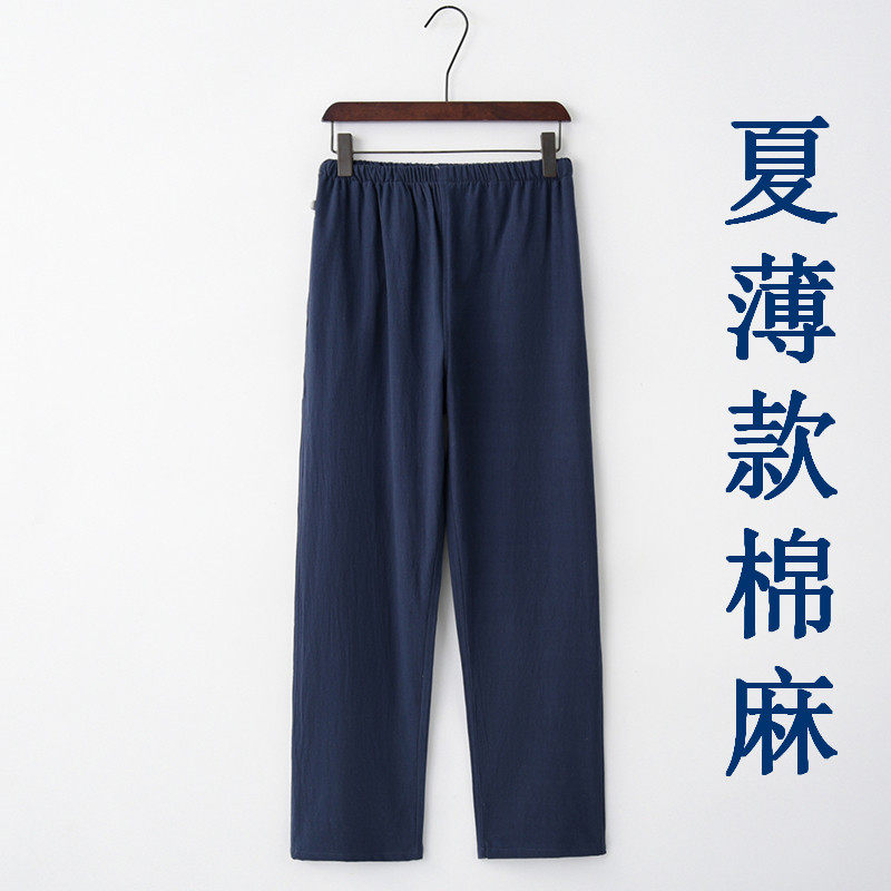 Мужские тонкие штаны для отдыха, из хлопка и льна, эластичная талия, высокая талия, свободный крой