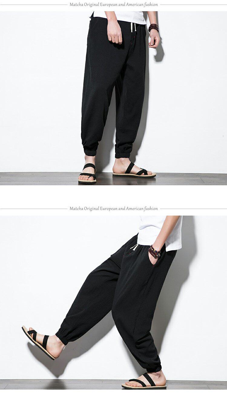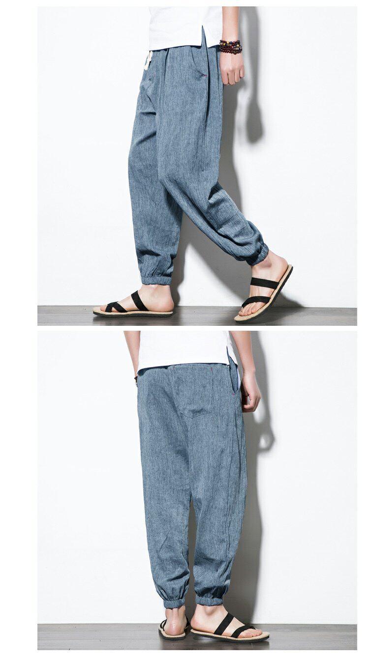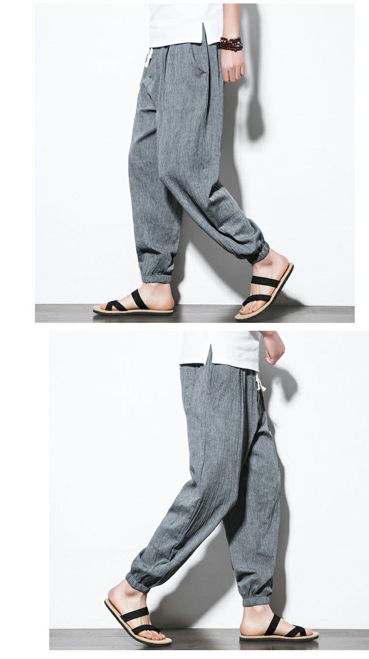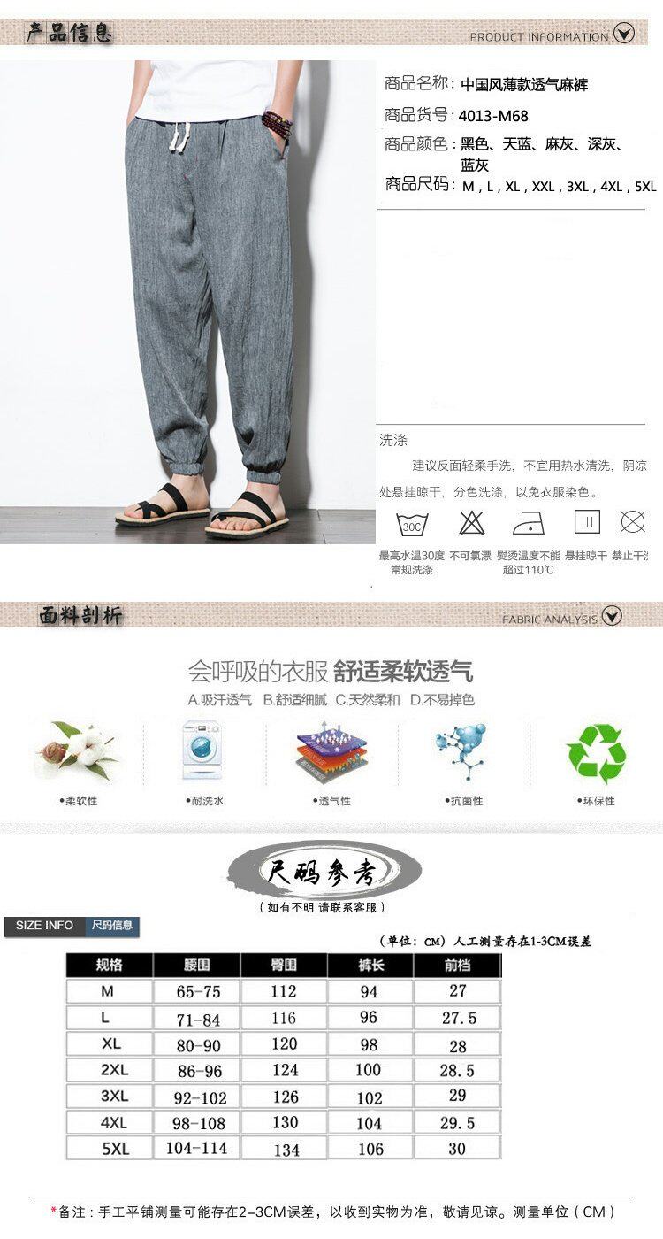 Китайские штаны, фонарь, китайский стиль, свободный крой, из хлопка и льна, большой размер