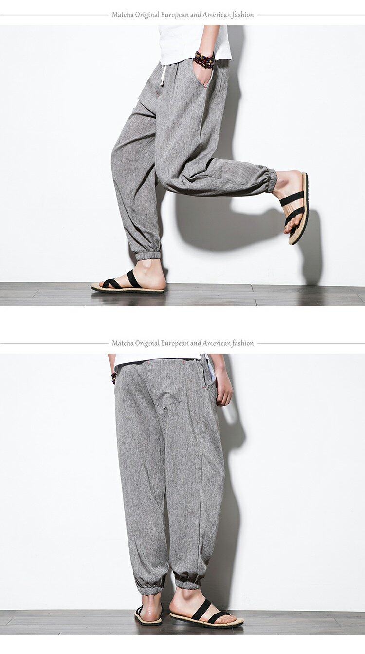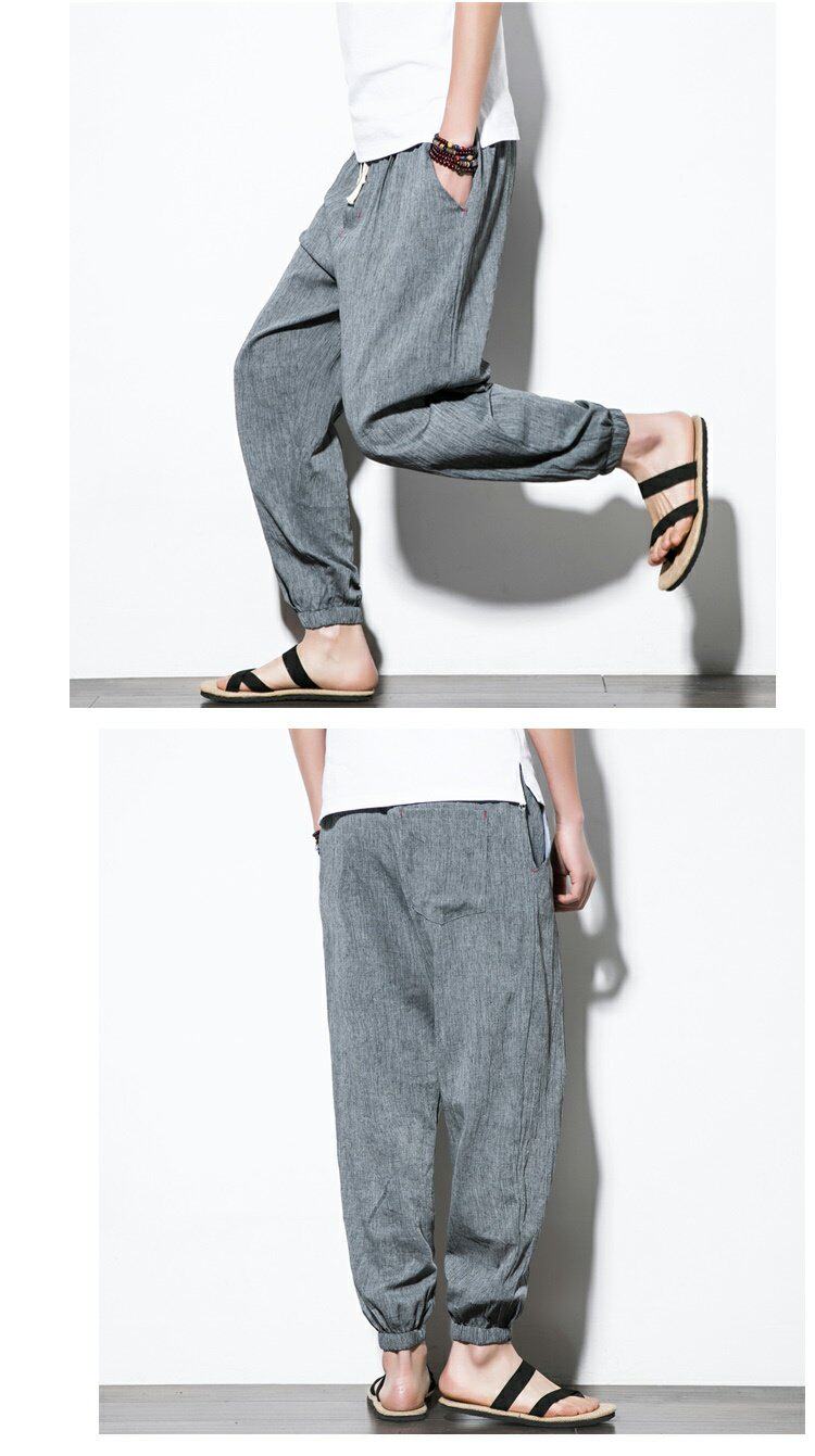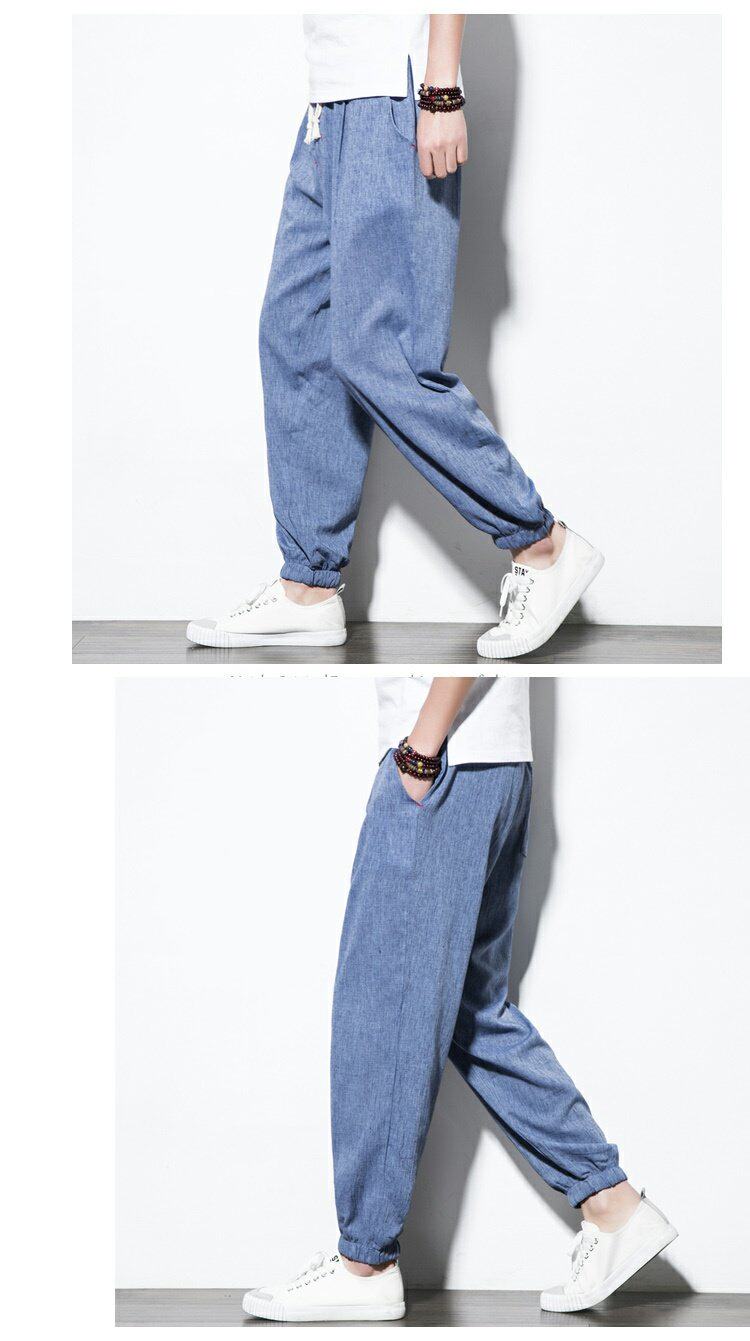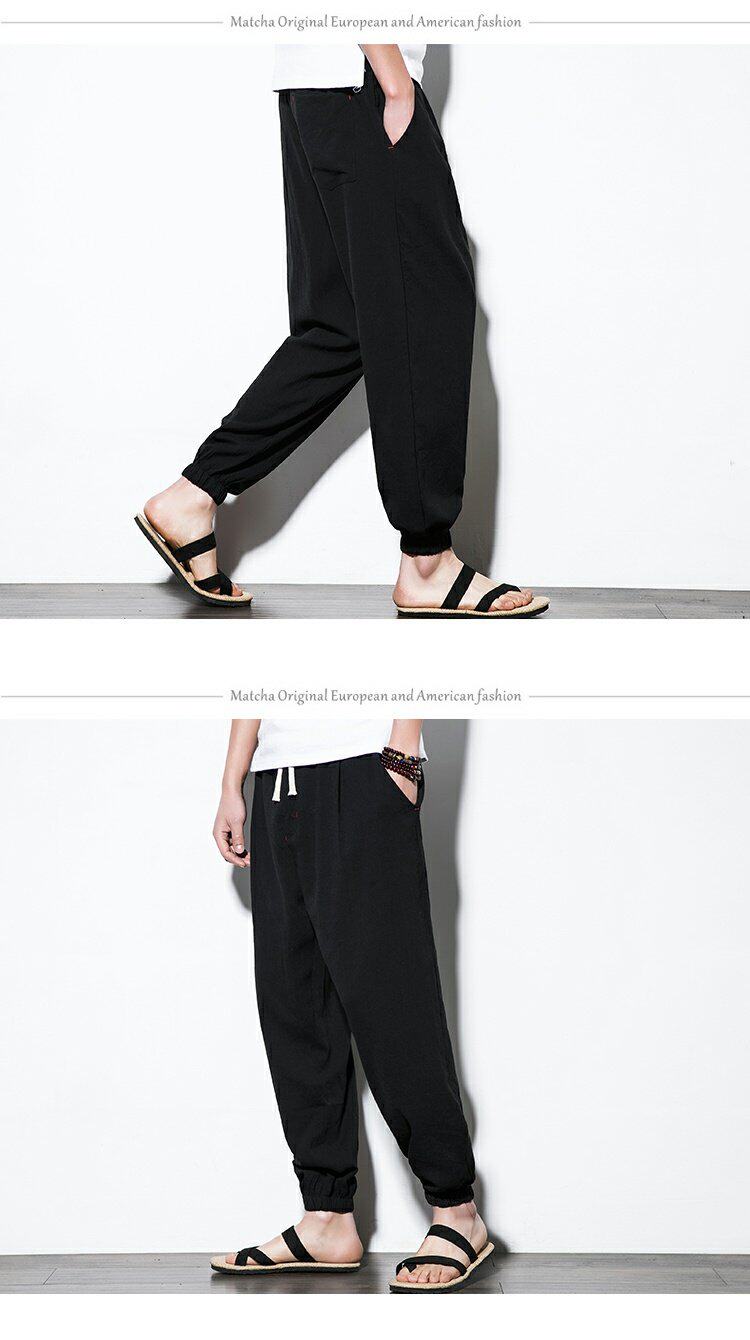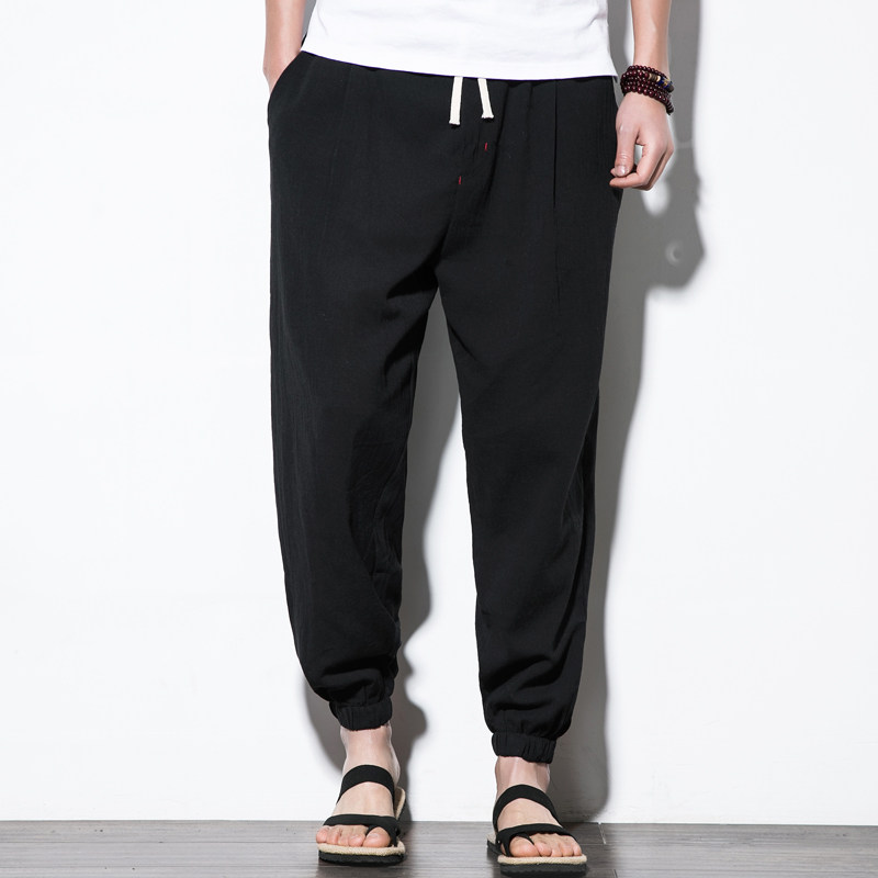 Китайские штаны, фонарь, китайский стиль, свободный крой, из хлопка и льна, большой размер