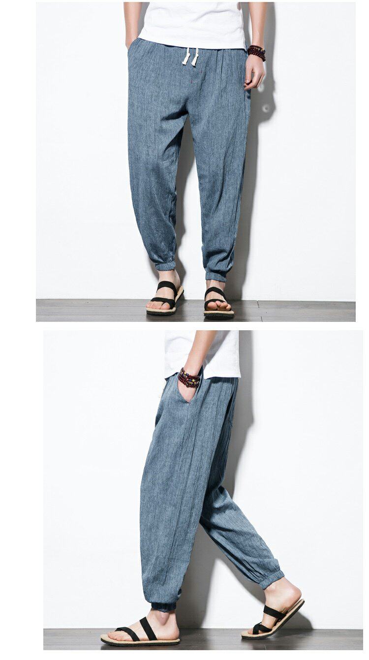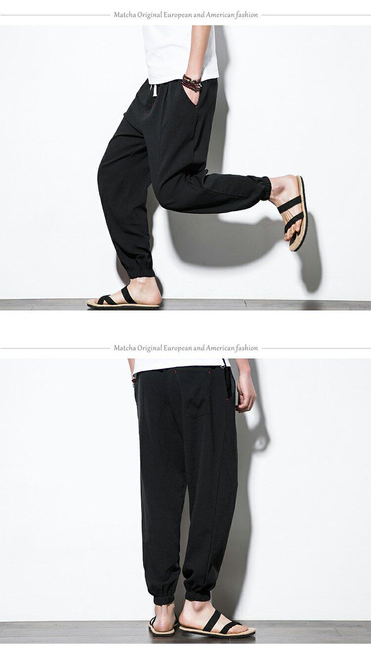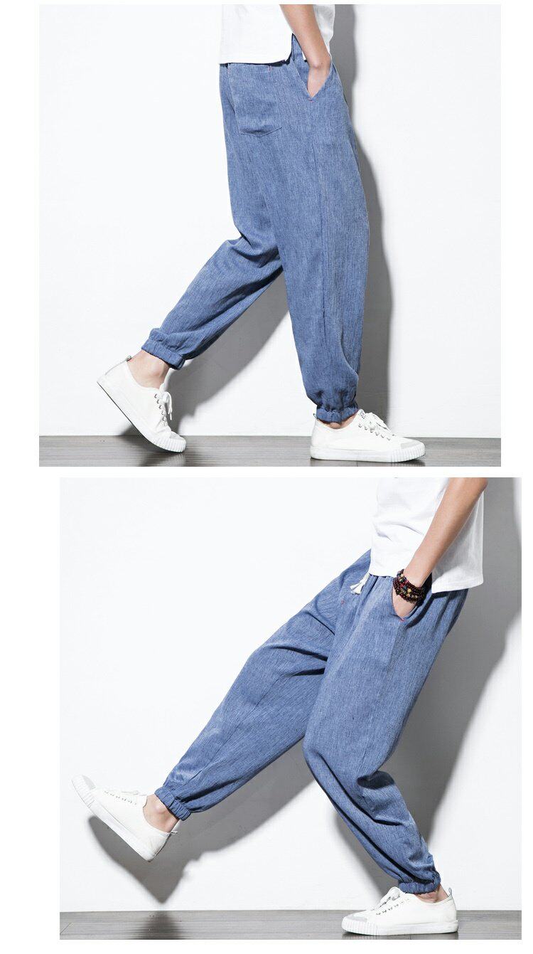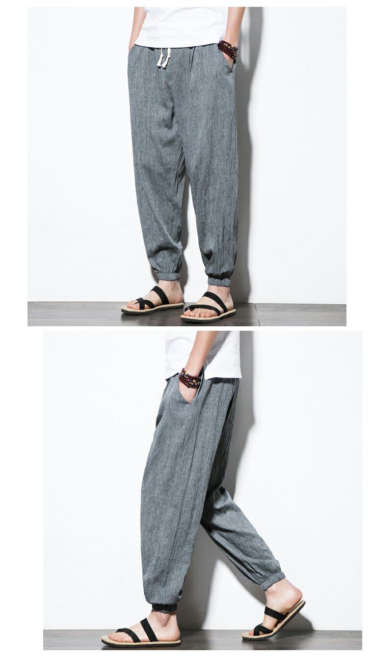 Китайские штаны, фонарь, китайский стиль, свободный крой, из хлопка и льна, большой размер