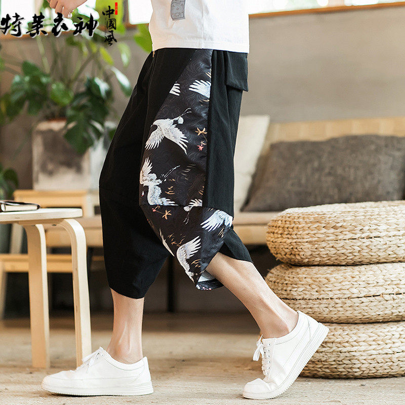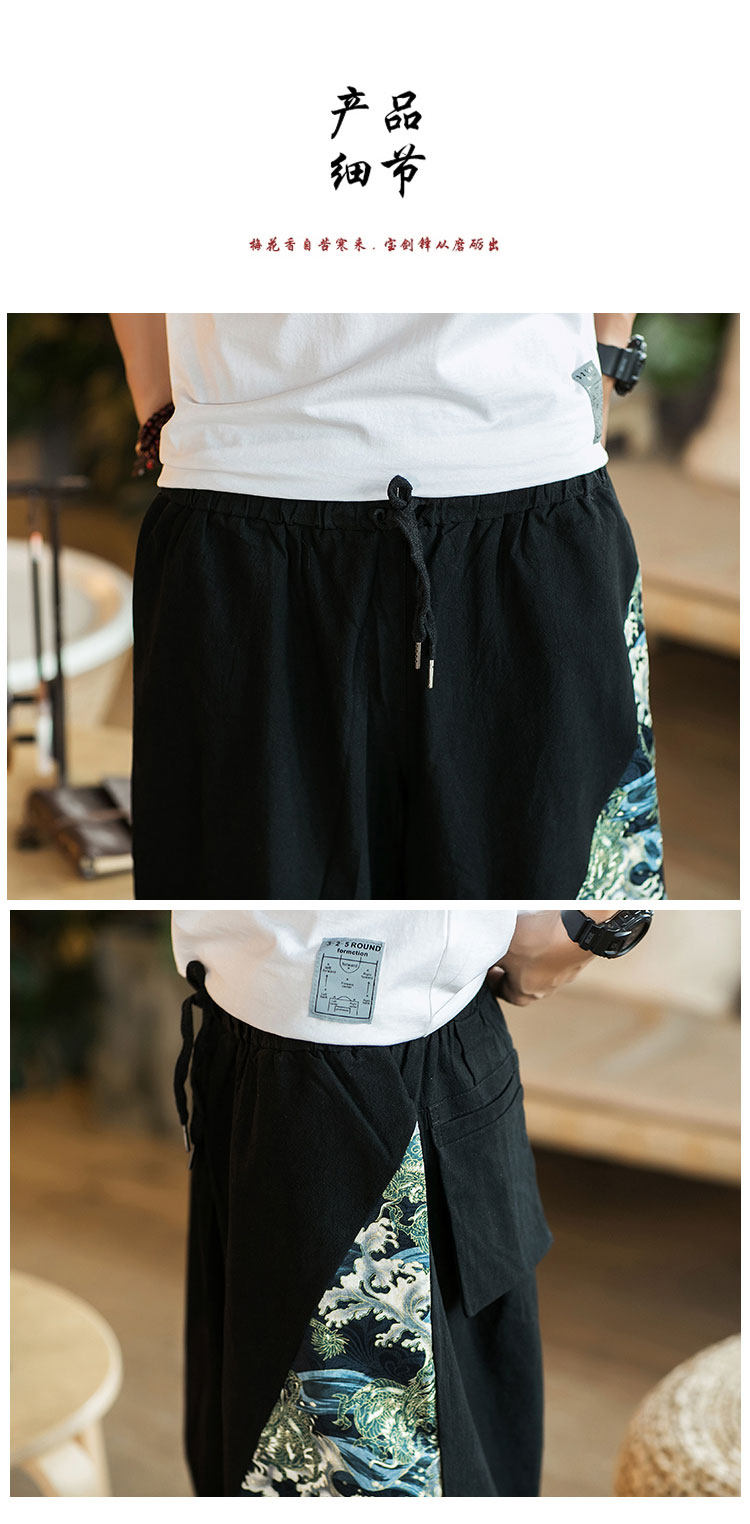 Летние китайские ретро штаны для мальчиков, пляжный фонарь, китайский стиль, большой размер, с вышивкой