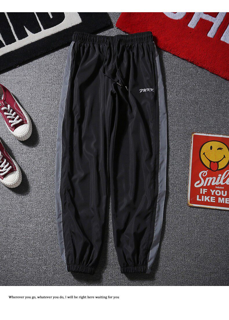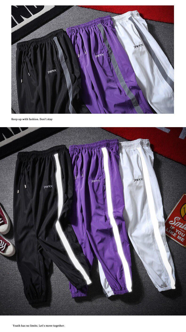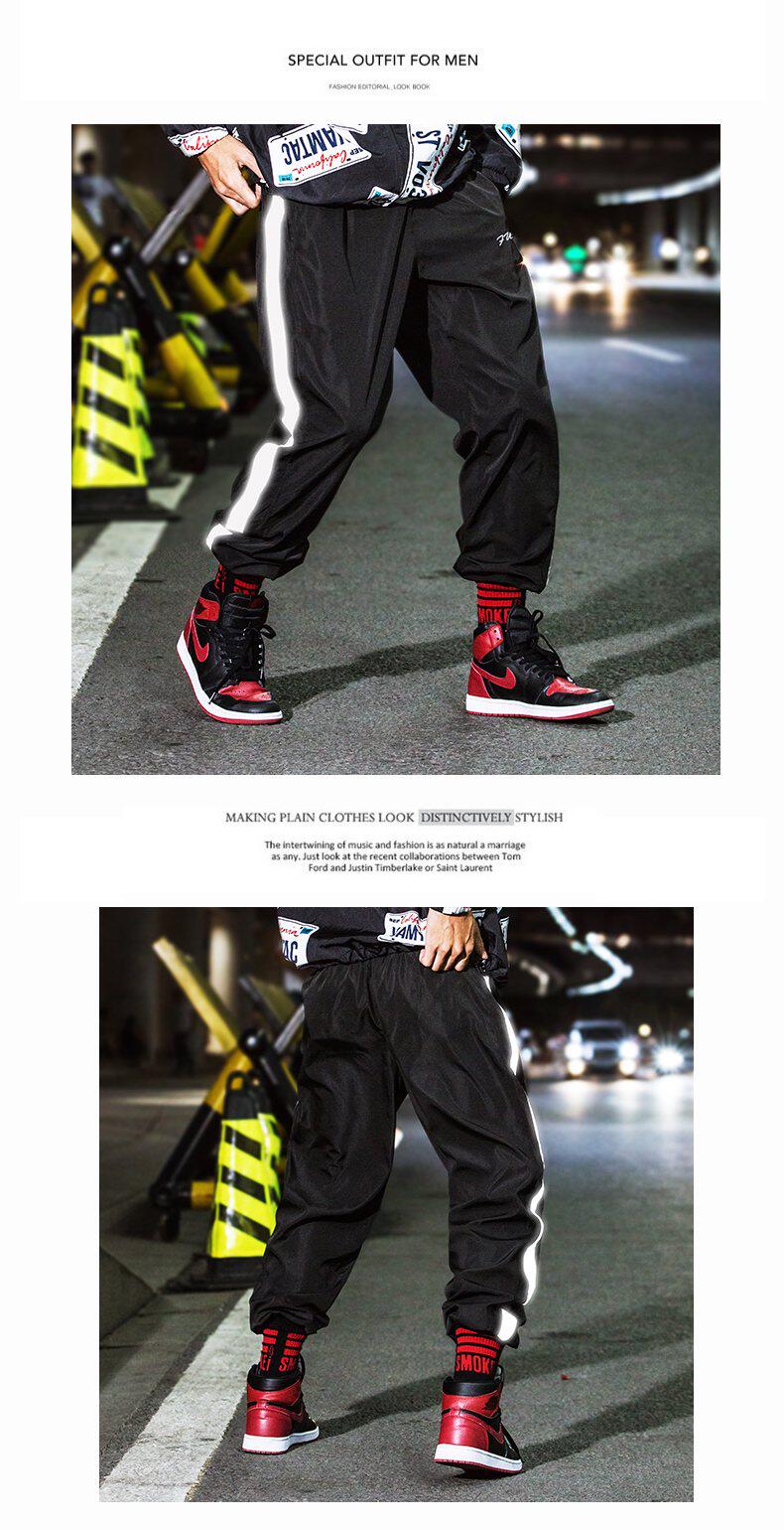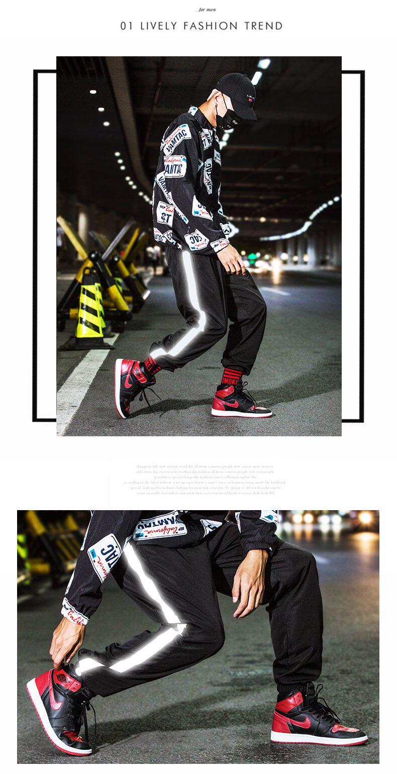 Осенние брендовые штаны, светоотражающие повседневные брюки подходит для мужчин и женщин, оверсайз