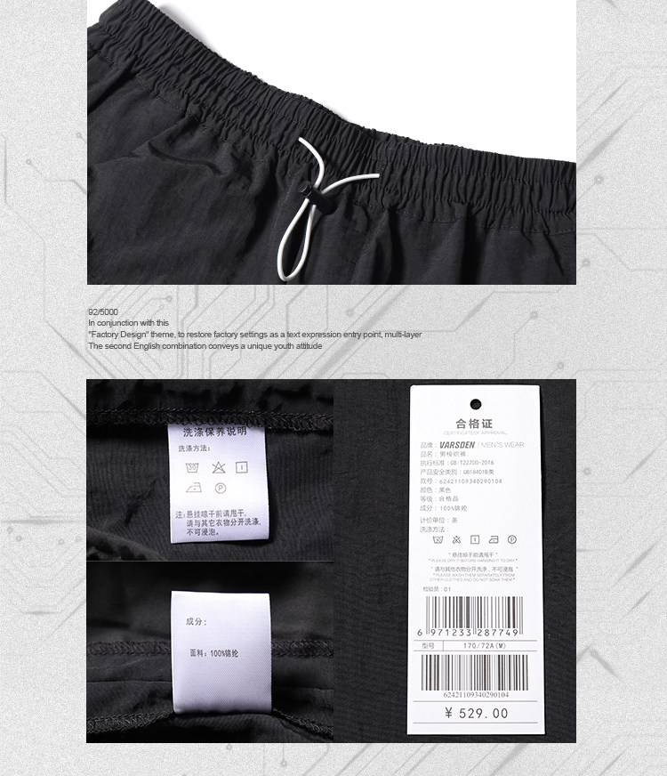Varsden/华尔思丹 Трендовые спортивные черные штаны, в корейском стиле